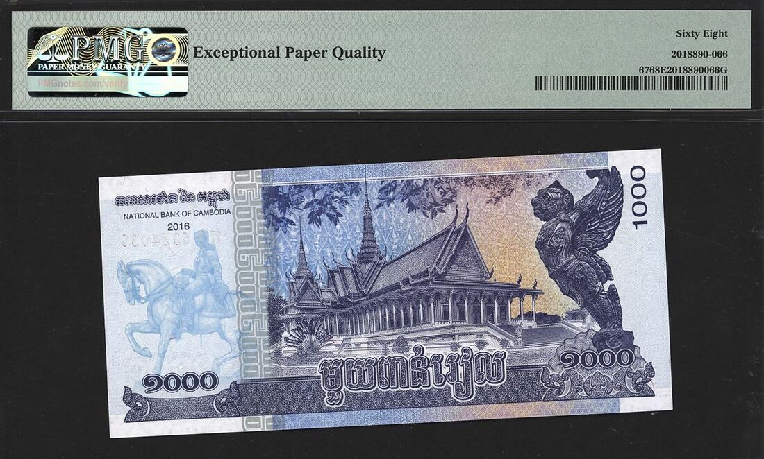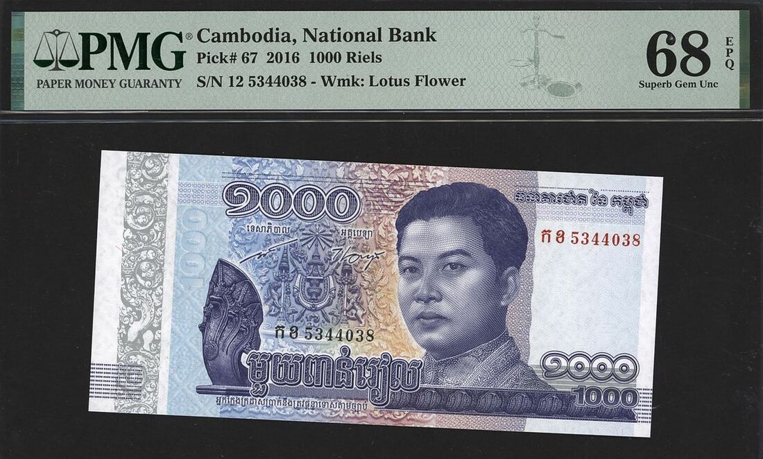 (x) National Bank of Cambodia, 1000 riels, 2016, serial number 12 5344038, (Pick 67), in PMG holder 68 EPQ Superb Gem Uncirculated