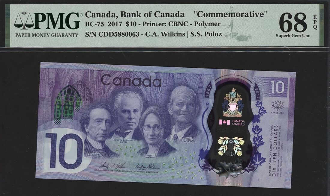 (x) Bank of Canada, commemorative $10, 2017, serial number CDD5880063, (Pick 112, BC-75), in PMG holder 68 EPQ Superb Gem Uncirculated