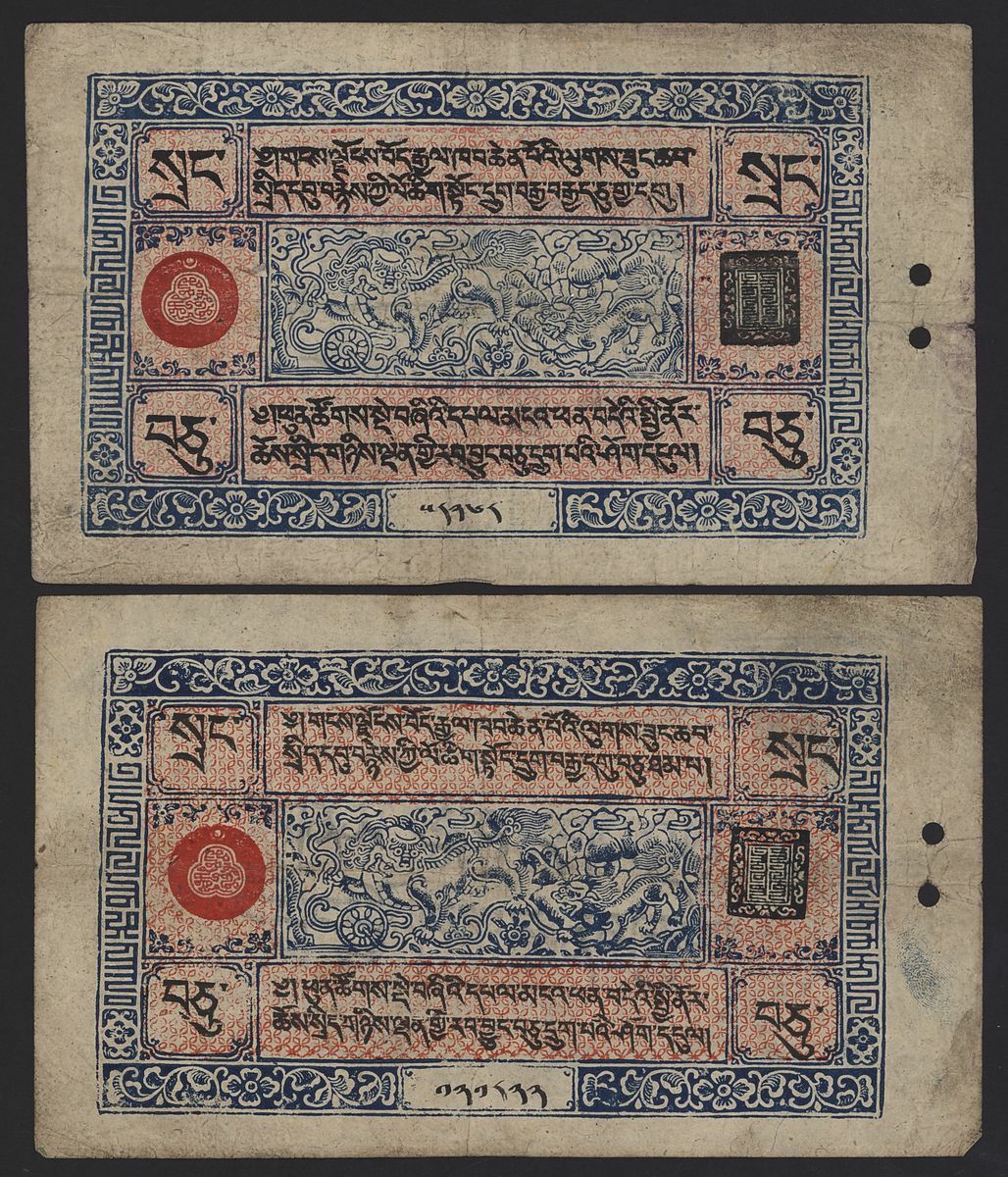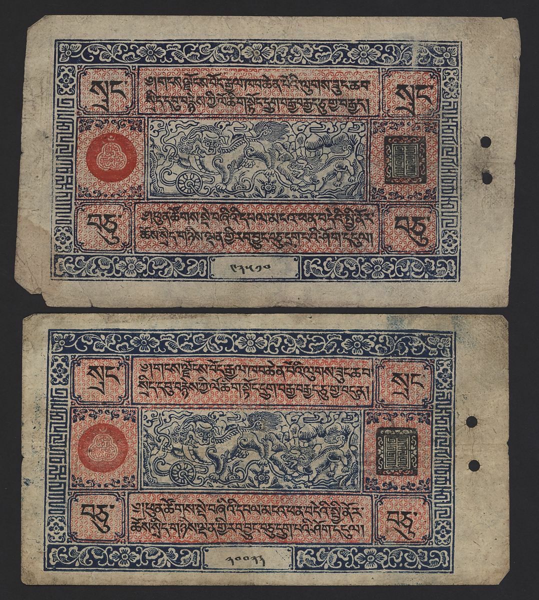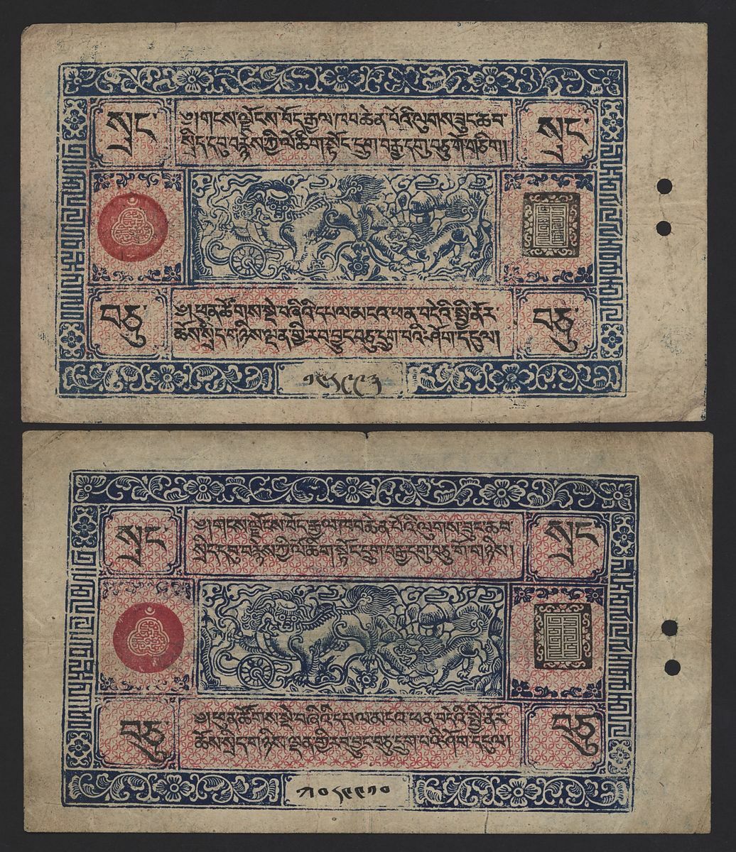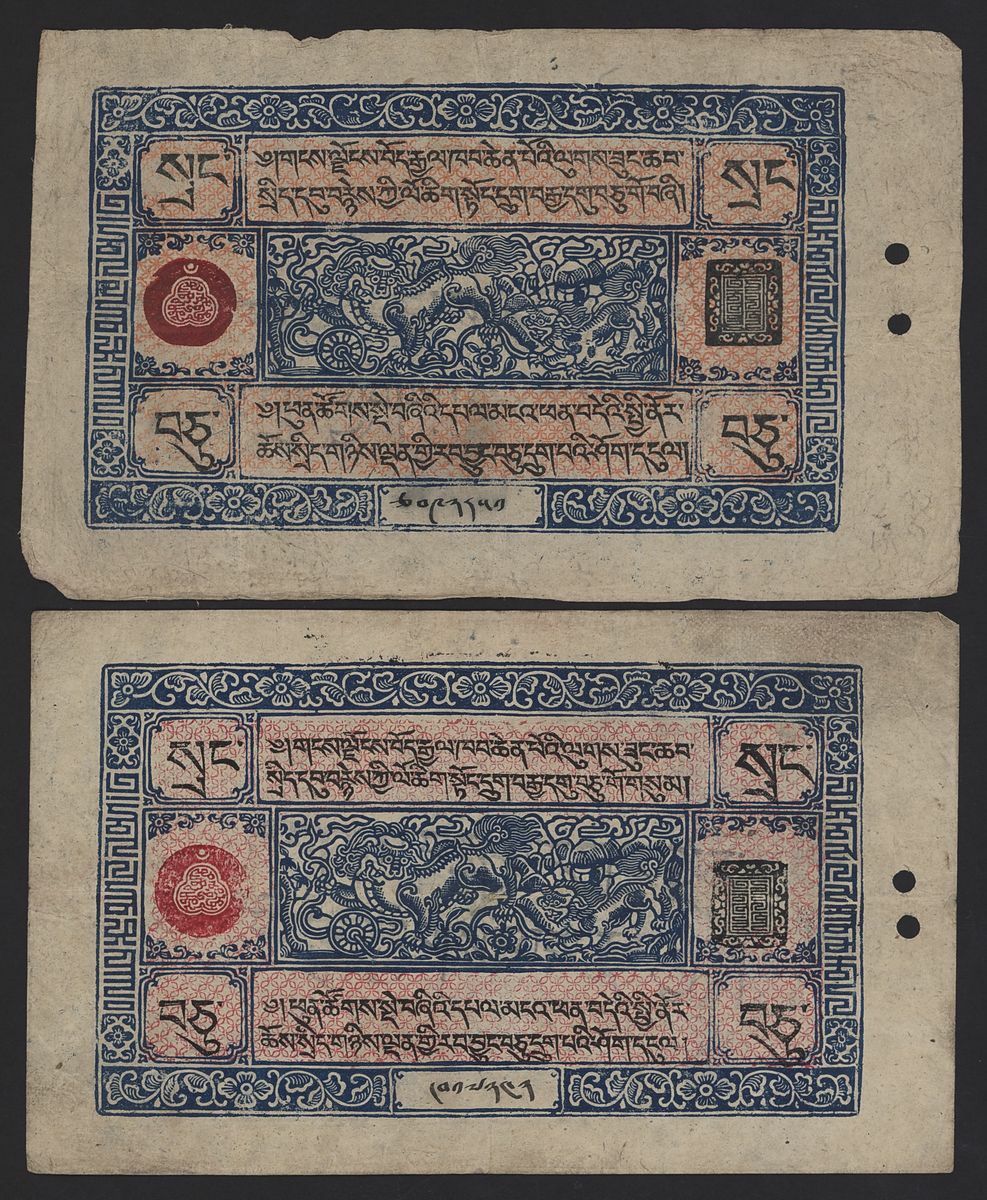 Government of Tibet, 10 srang (8), complete run T.E. 1687-1694, (A.D. 1941-48), blue and red, black seal type