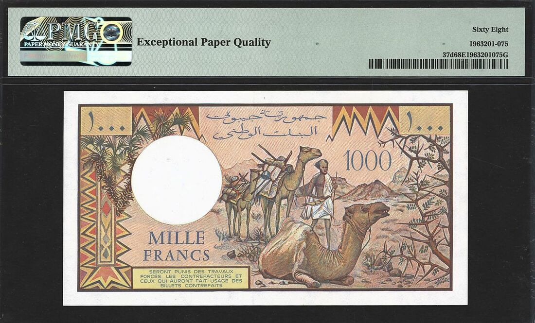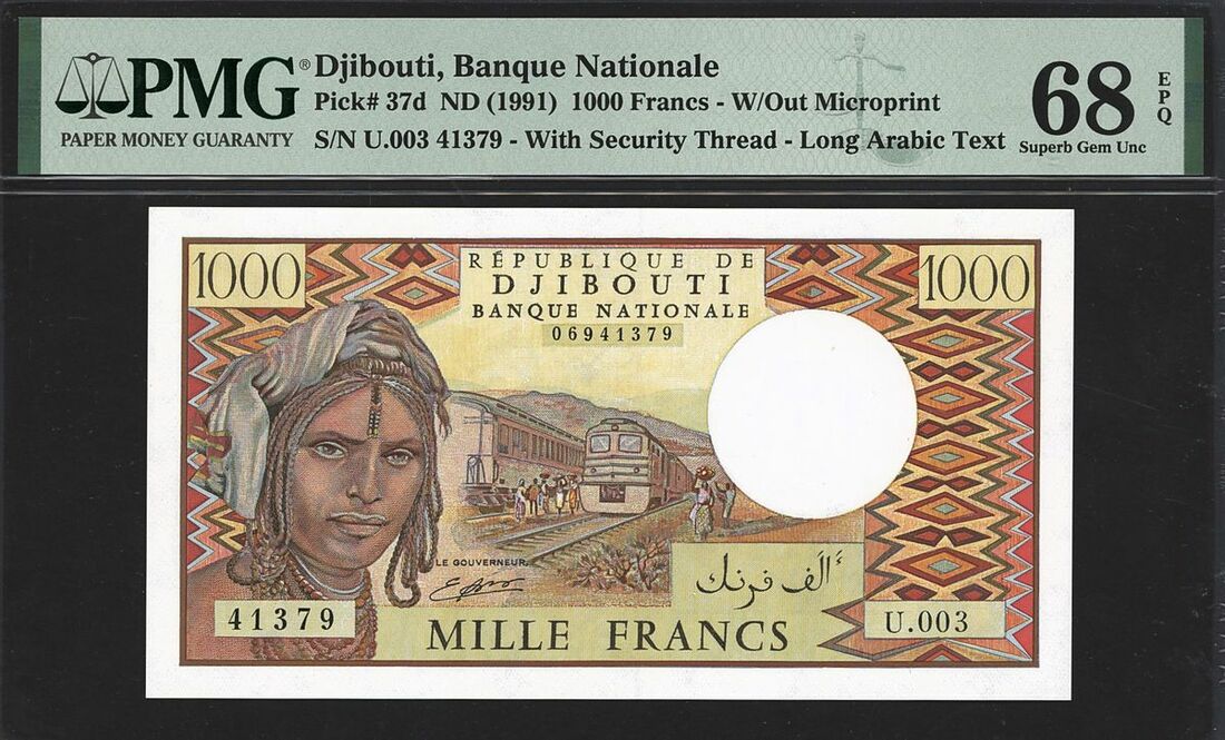 (x) Banque Nationale, Djibouti, 1000 francs, ND (1991), serial number U.003 41379, (Pick 37d), in PMG holder 68 EPQ Superb Gem Uncirculated