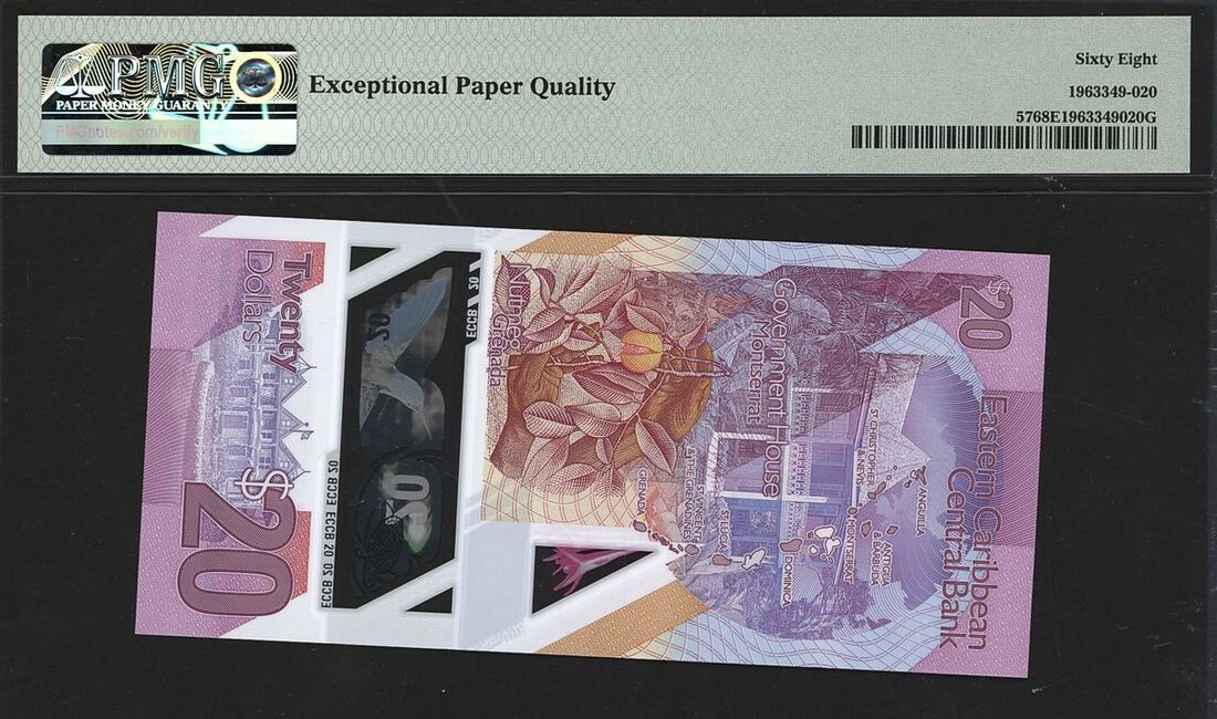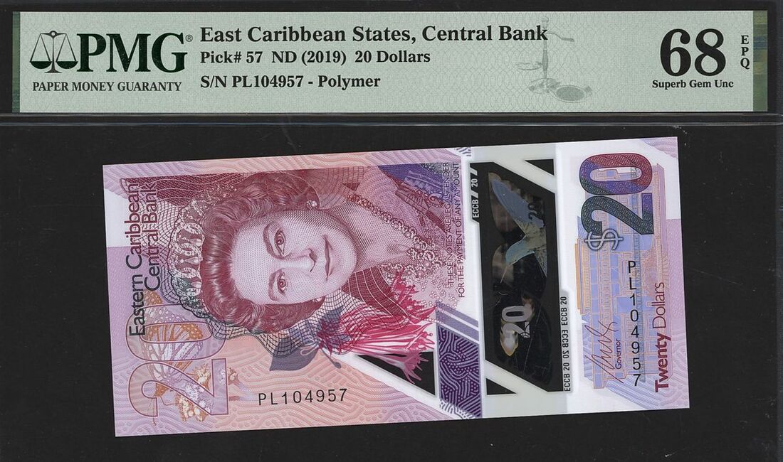 (x) Eastern Caribbean Central Bank, East Caribbean States, 20 dollars, ND (2016), serial number PL104957, (Pick 57), in PMG holder 68 EPQ Superb Gem Uncirculated