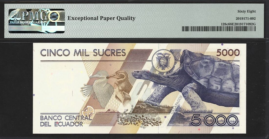 (x) Banco Central, Ecuador, 5000 sucres, 1996-99, serial number AN 02293370, (Pick 128c), in PMG holder 68 EPQ Superb Gem Uncirculated