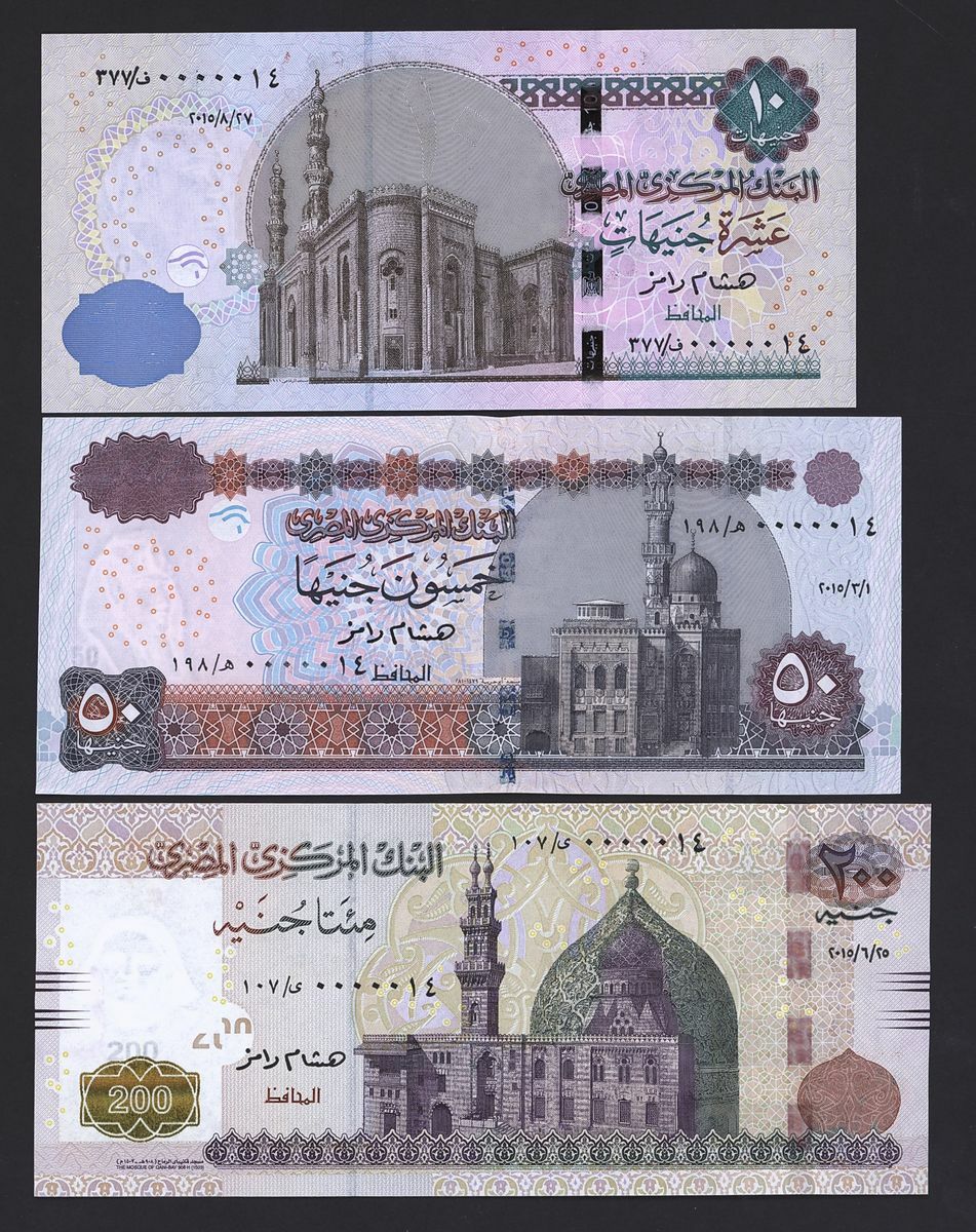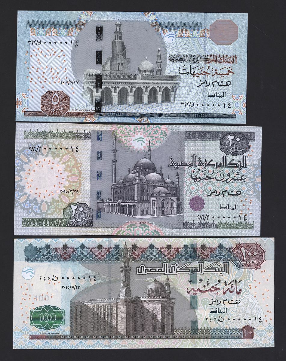 (x) Central Bank of Egypt, same low serial number 0000014 200, 100, 50, 20, 10, 5 pounds