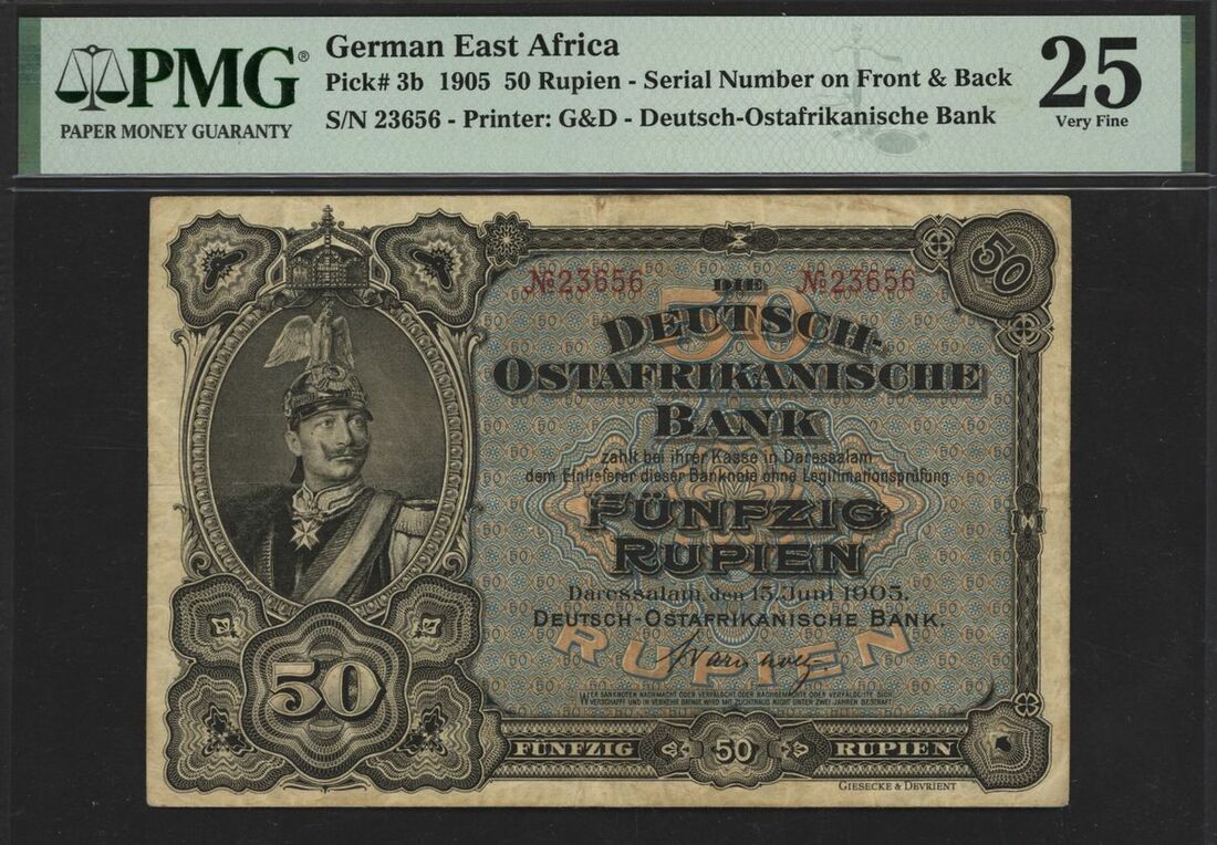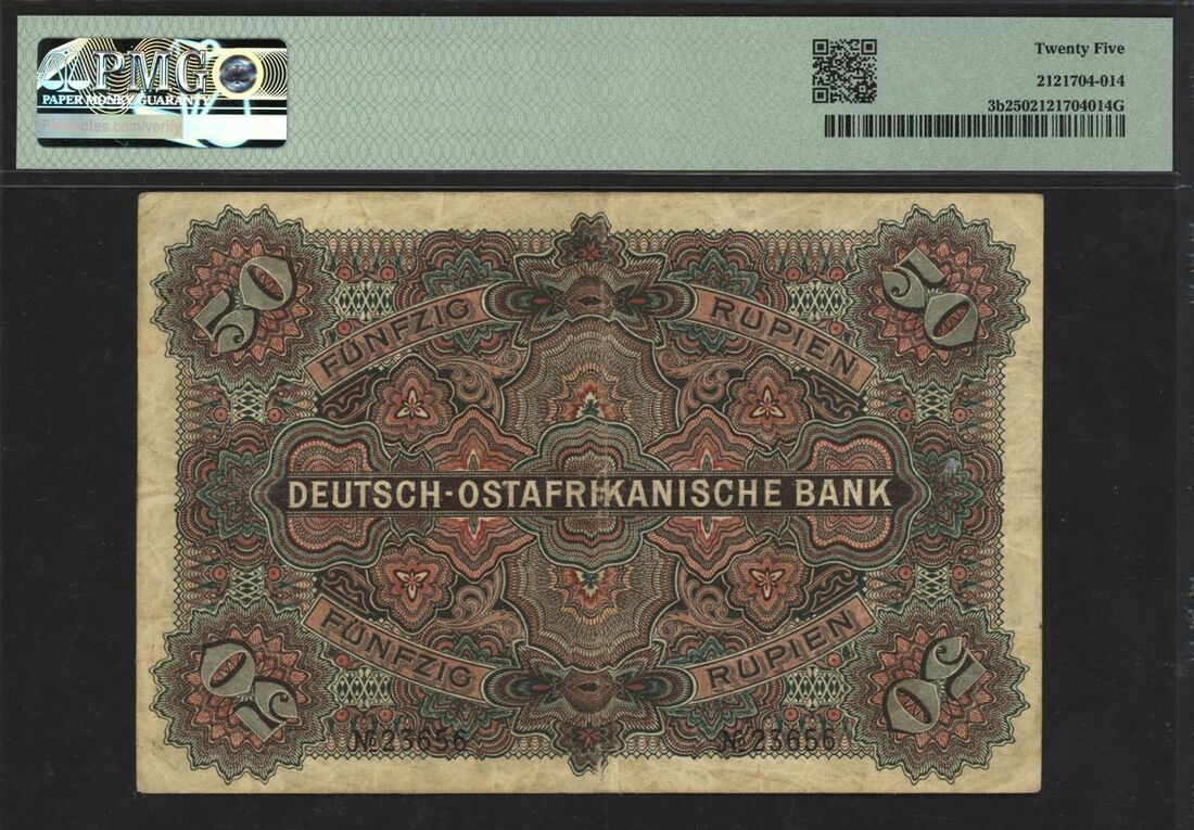 (x) Deutsch-Ostafrikanische Bank, German East Africa, 50 rupien, 1905, serial number 23656, (Pick 3b), in PMG holder 25 Very Fine