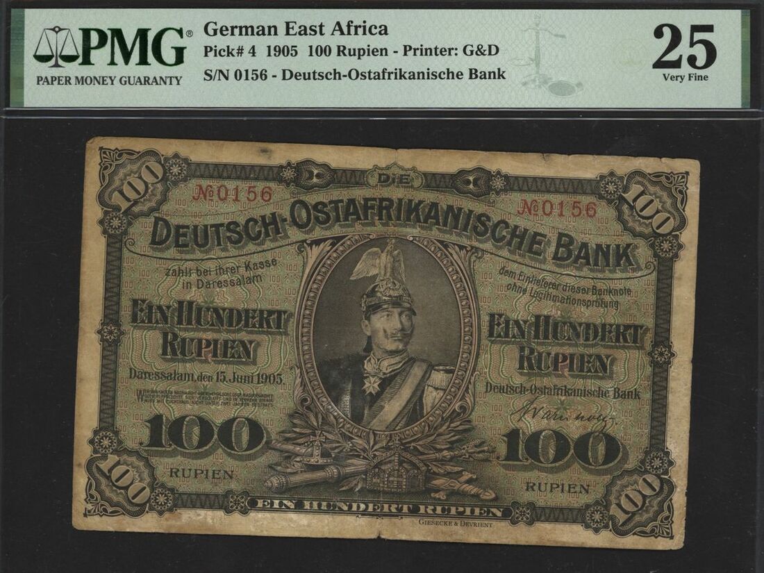 (x) Deutsch-Ostafrikanische Bank, German East Africa, 100 rupien, 1905, serial number 0156, (Pick 4), in PMG holder 25 Very Fine