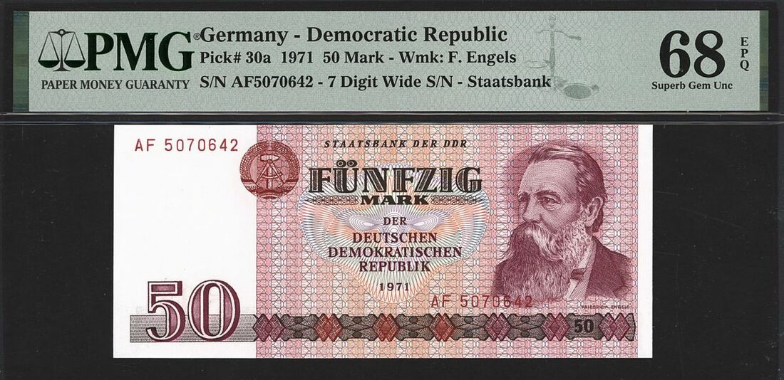 (x) Germany - Democratic Republic, 50 mark, 1971, serial number AF5070642, (Pick 30a), in PMG holder 68 EPQ Superb Gem Uncirculated