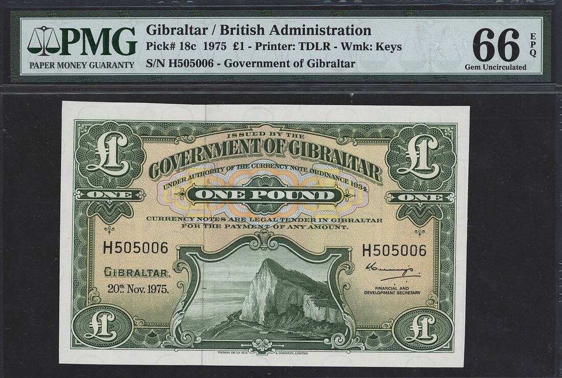 Government of Gibraltar, £1, 1975, serial number H505006, (Pick 18c), in PMG holder 66 EPQ Gem Uncirculated