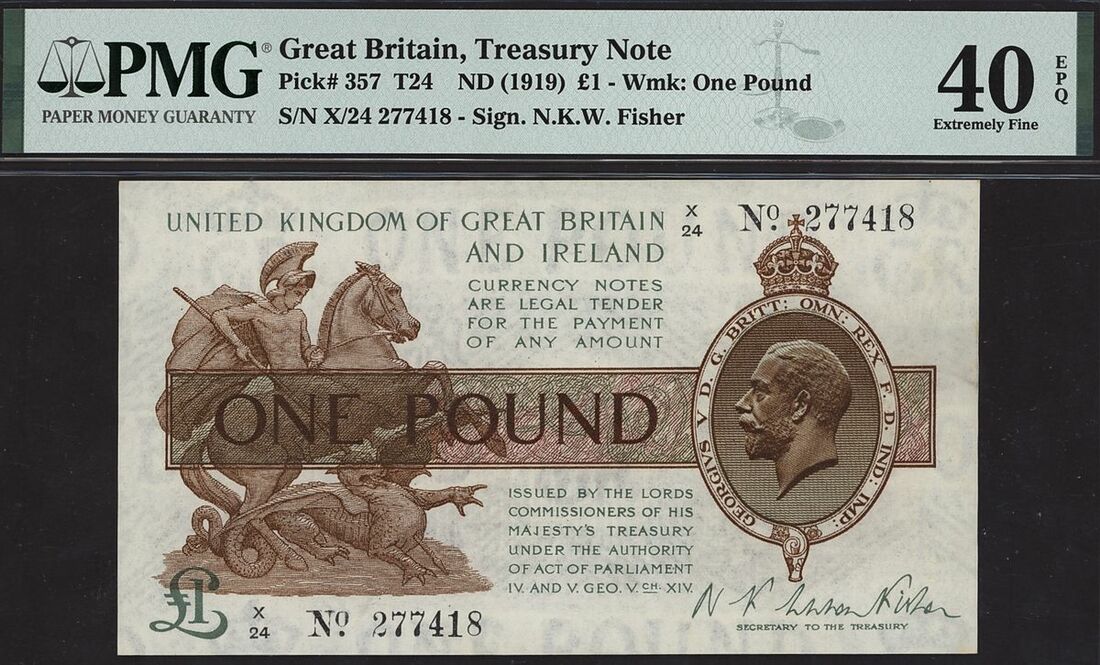 Treasury Note, Great Britain, £1, ND (1919), serial number X/24 277418, (EPM T24), in PMG holder 40 EPQ Extremely Fine