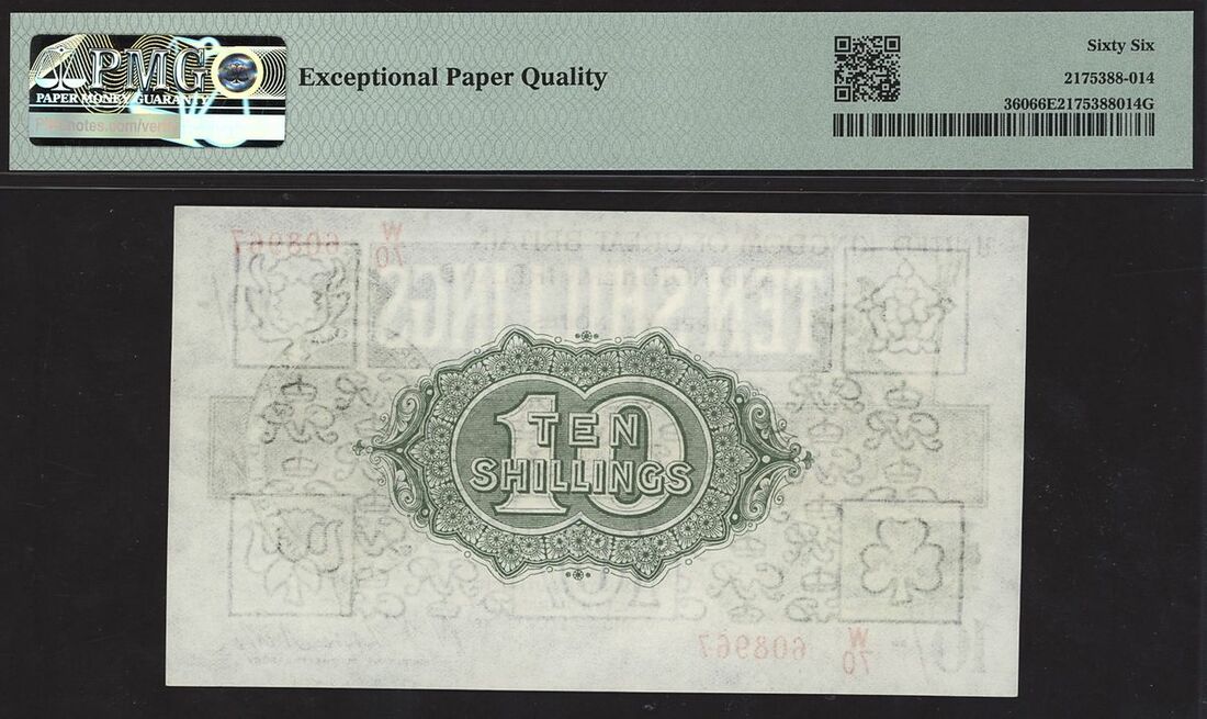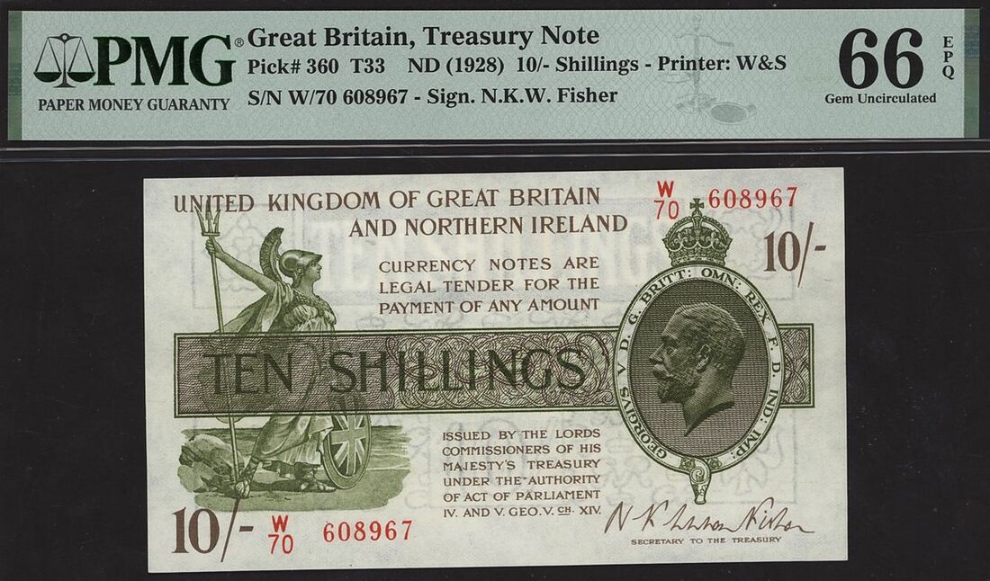 (x) Treasury Note, Great Britain, [Top Pop] 10 shillings, ND (1928), serial number W/70 608967, (EPM T33, Pick 360), in PMG holder 66 EPQ Gem Uncirculated