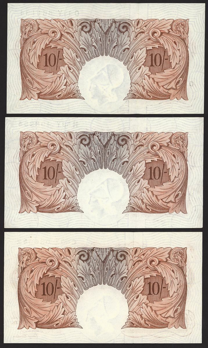 Bank of England, L. K. O'Brien, a trio of 10 shillings, ND (1955), serial numbers C80Z 036042, H53Y 498254, O48Y 661135, (EPM B271), uncirculated
