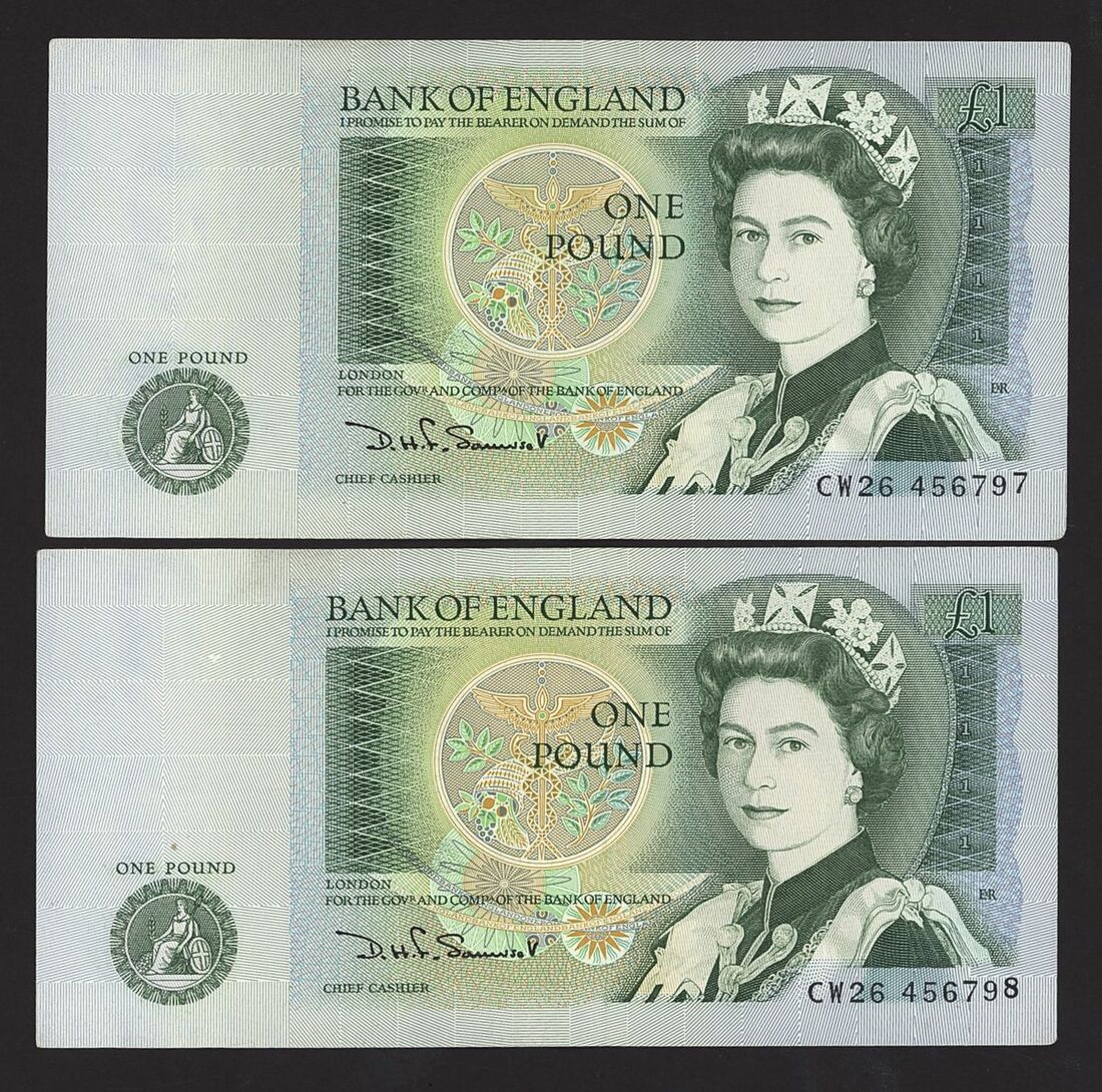 Bank of England, D. H. F. Somerset, £1 (2), ND (1981), consecutive serial numbers CW26 456797-8, (EPM B341), very fine