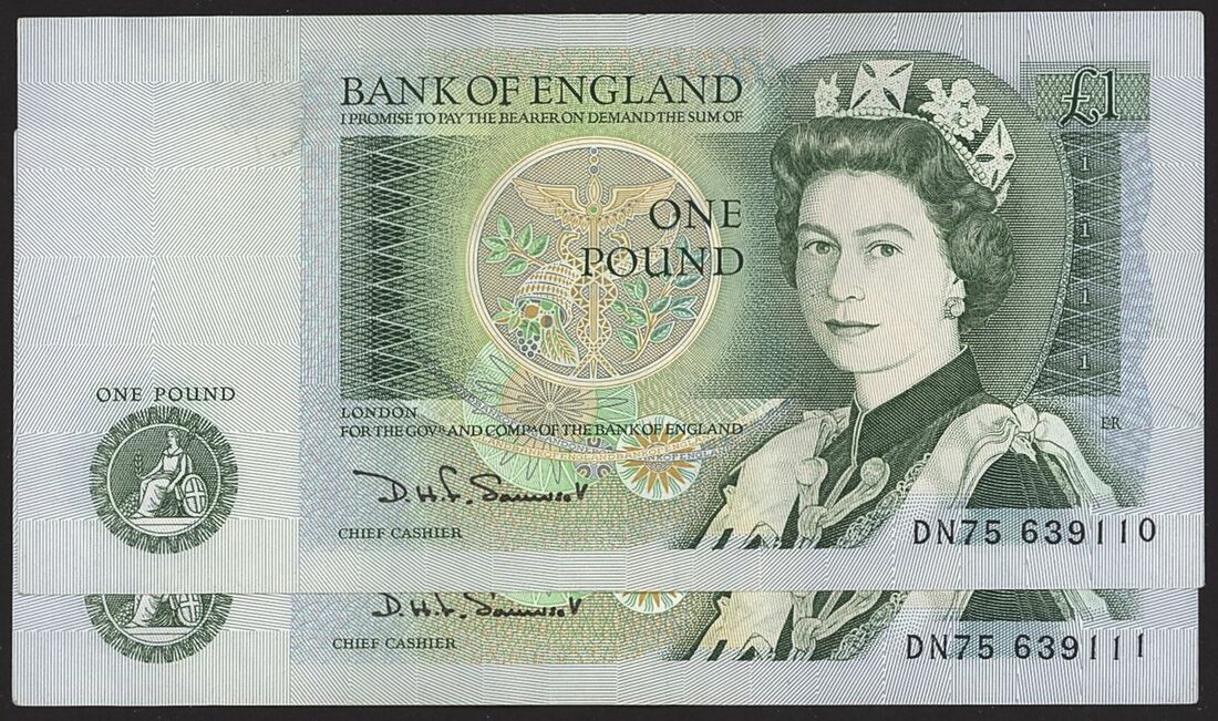 Bank of England, D. H. F. Somerset, £1 (2), ND (1981), consecutive serial numbers DN75 639110-11, (EPM B341), very fine, one minor stain
