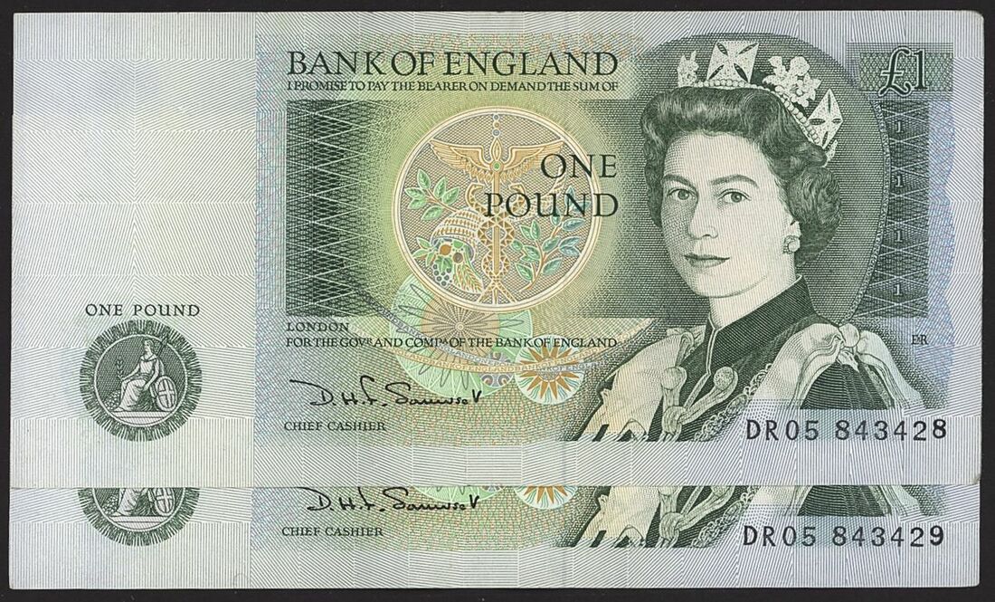 Bank of England, D. H. F. Somerset, £1 (2), ND (1981), consecutive serial numbers DR05 843428-9, (EPM B341), very fine