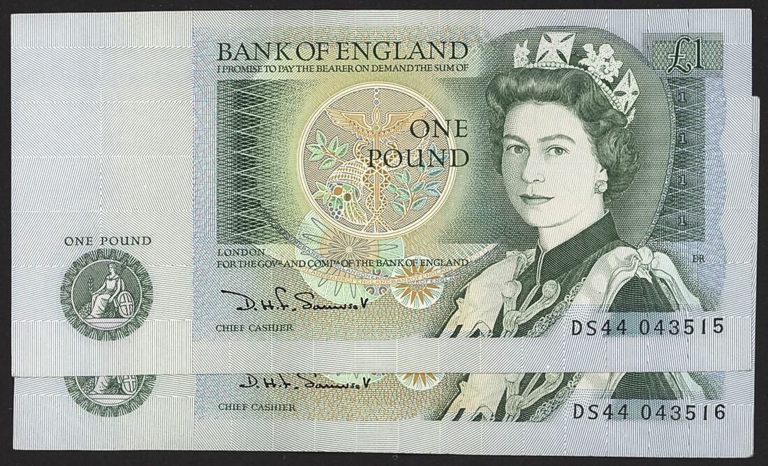 Bank of England, D. H. F. Somerset, £1 (2), ND (1981), consecutive serial numbers DS44 043515-6, (EPM B341), extremely fine