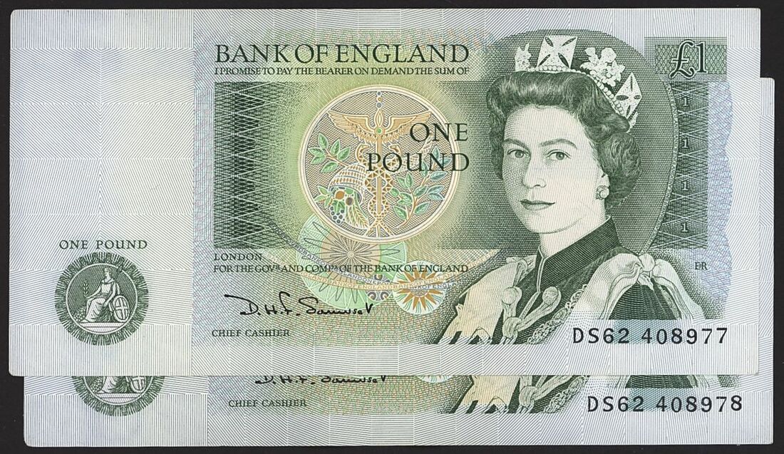 Bank of England, D. H. F. Somerset, £1 (2), ND (1981), consecutive serial numbers DS62 408977-8, (EPM B341), very fine