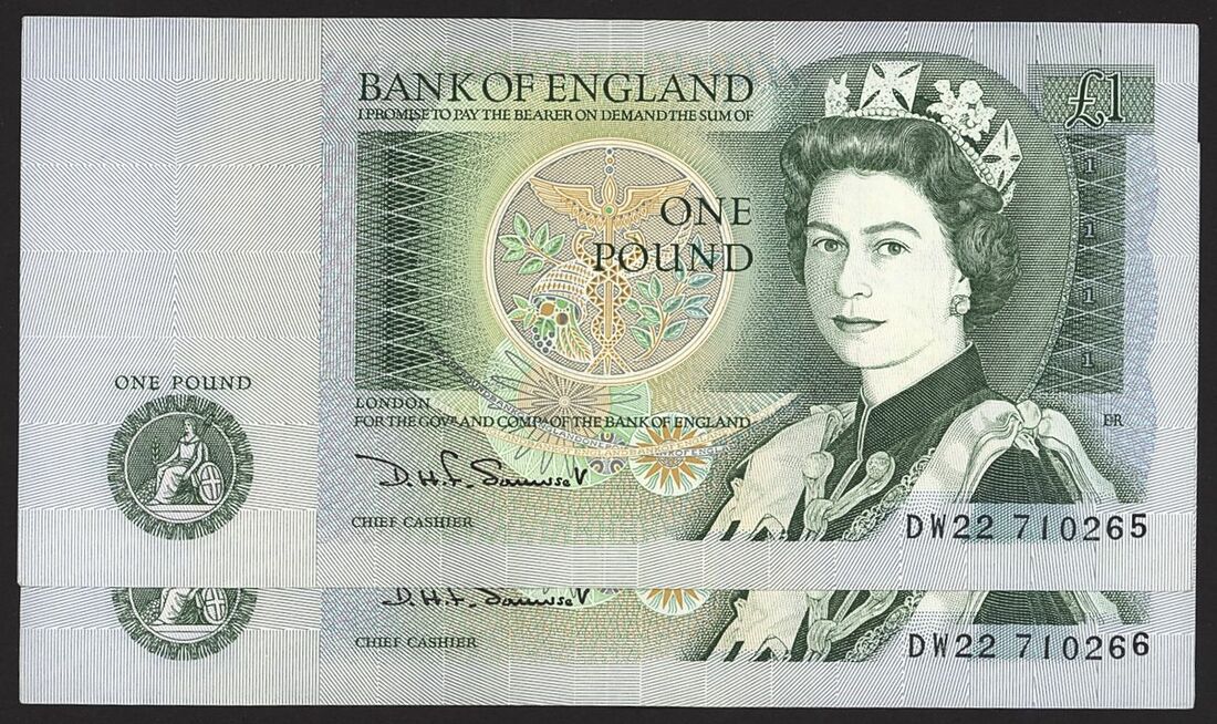 Bank of England, D. H. F. Somerset, £1 (2), ND (1981), consecutive serial numbers DW22 710265-6, (EPM B341), very fine