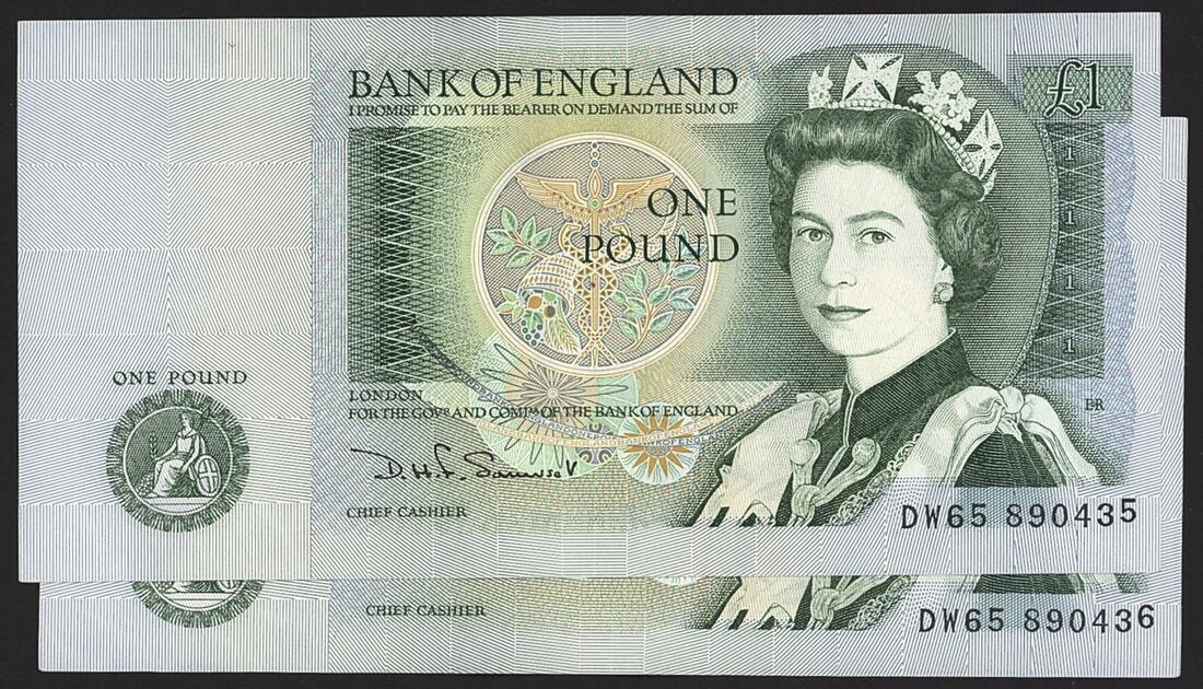 Bank of England, D. H. F. Somerset, £1 (2), ND (1981), consecutive serial numbers DW65 890435-6, (EPM B341), extremely fine