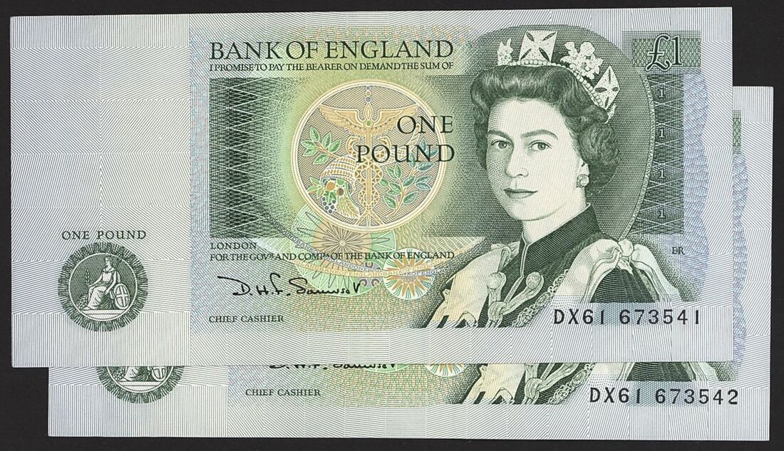 Bank of England, D. H. F. Somerset, £1 (2), ND (1981), consecutive serial numbers DX61 673541-2, (EPM B341), extremely fine, crease on first note