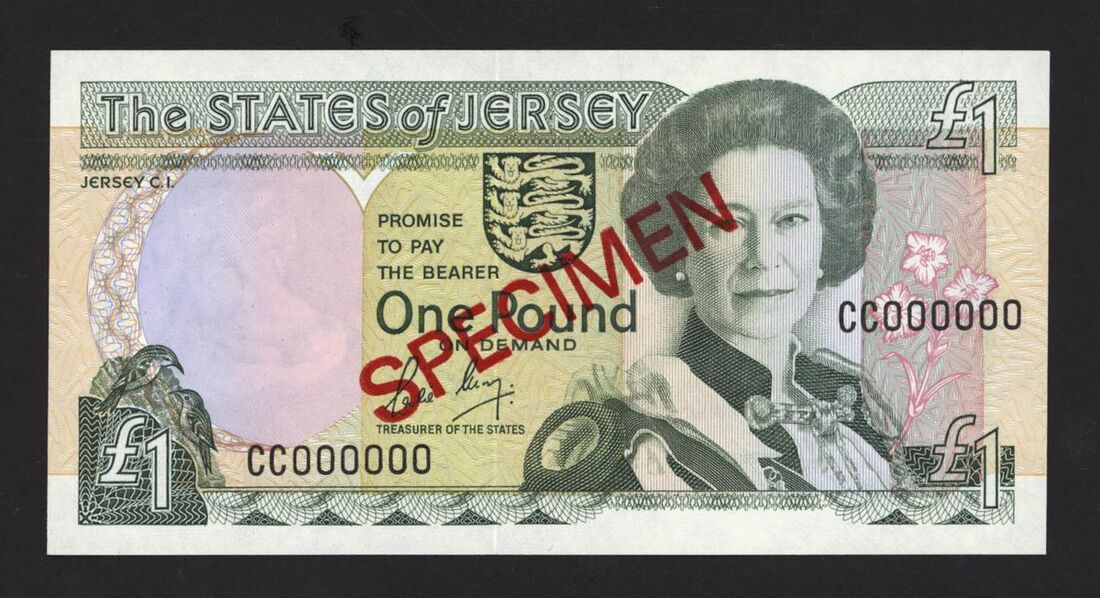 (x) States of Jersey, £1, ND (1989), serial number CC000004, also specimen £1, both signature May,