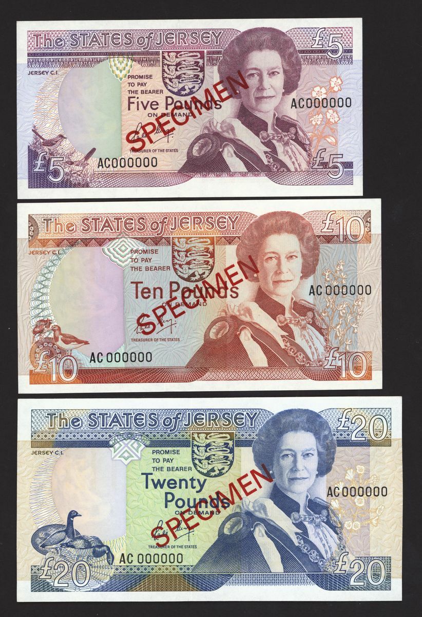 (x) States of Jersey, a group of specimens, £5, £10, £20, ND (1989), signature May,