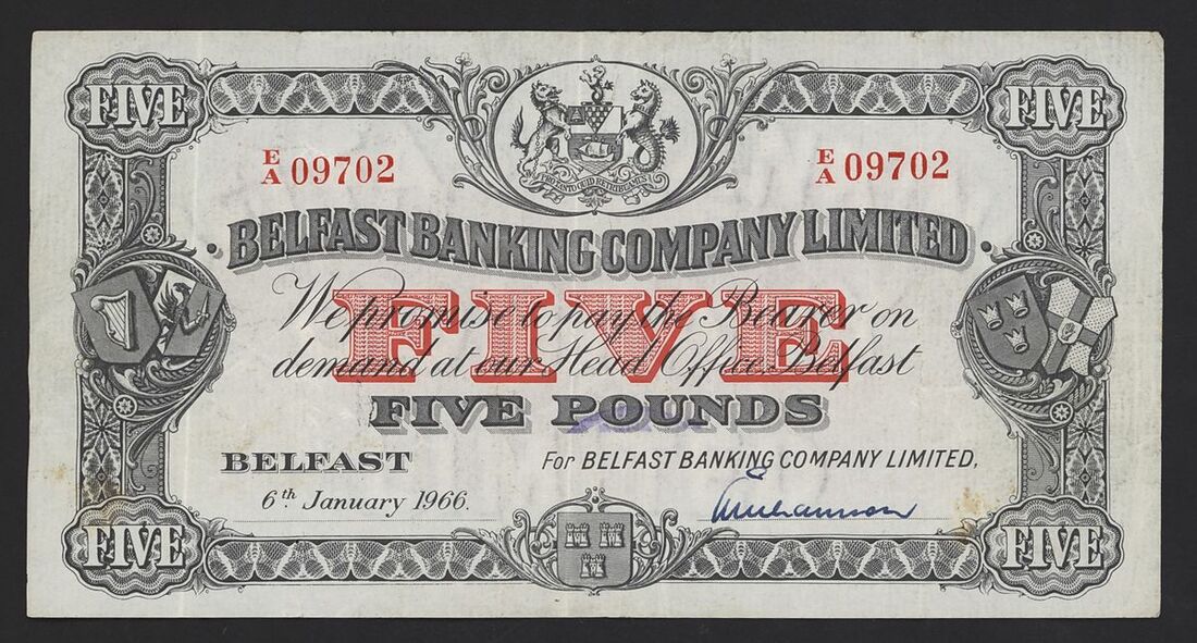 Belfast Banking Company, Northern Ireland, £5, 6th January 1966, serial number E/A 09702, (PMI BB70), very fine
