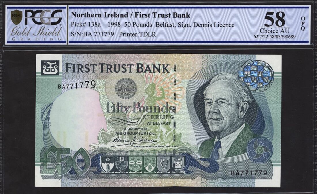 (x) First Trust Bank, Northern Ireland, £50, 1st January 1998, serial number BA771779, (PMI FT11), in PCGS holder 58 Choice About Uncirculated