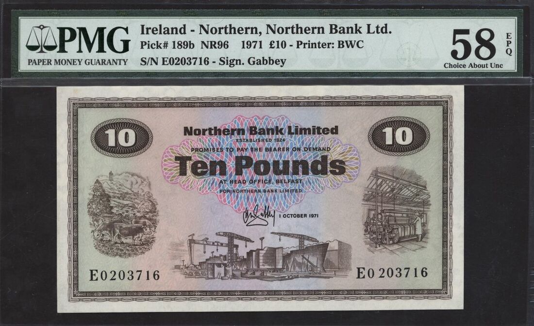 (x) Northern Bank, Northern Ireland, £10, 1st October 1971, serial number E0203716, (PMI NR96), in PMG holder 58 Choice About Uncirculated