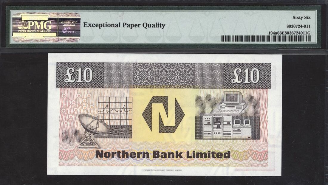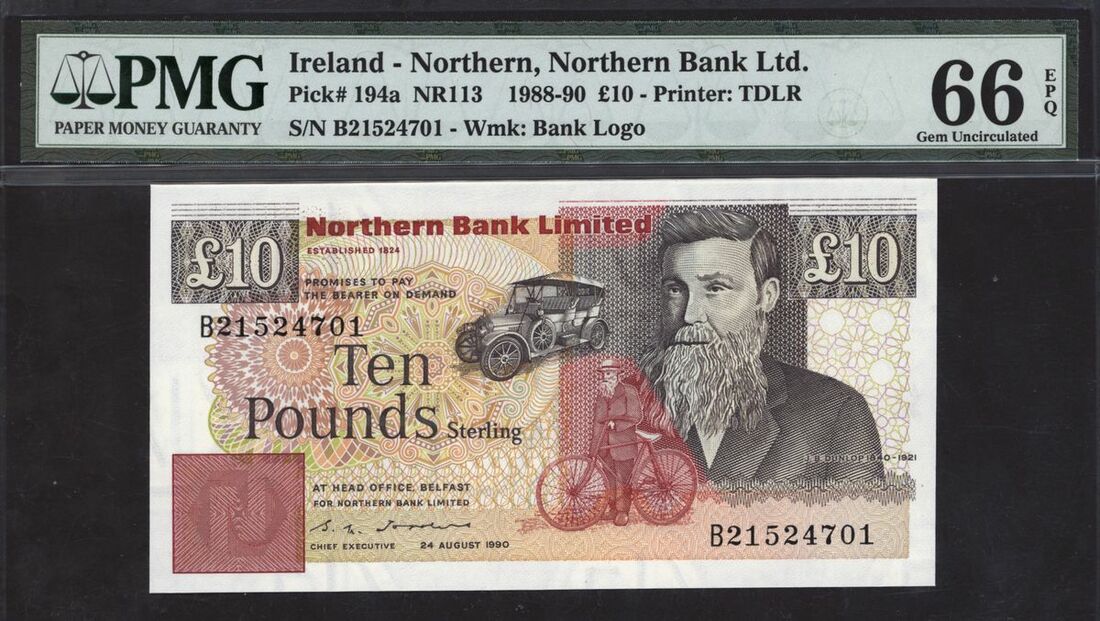 (x) Northern Bank, Northern Ireland, £10, 24th August 1990, serial number B21524701, (PMI NR113), in PMG holder 66 EPQ Gem Uncirculated