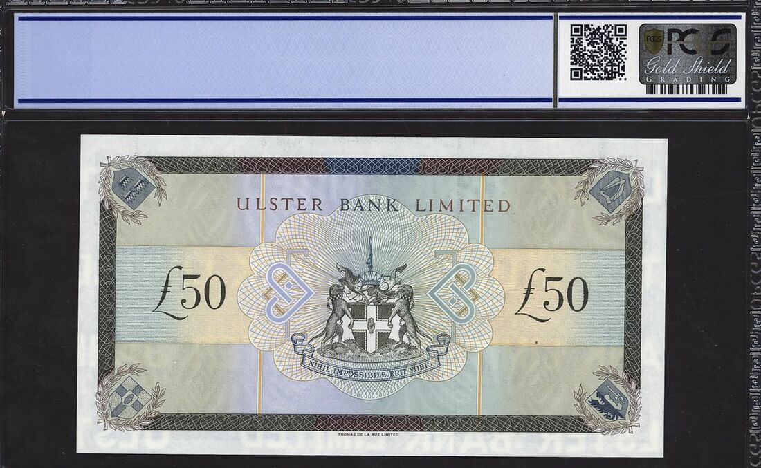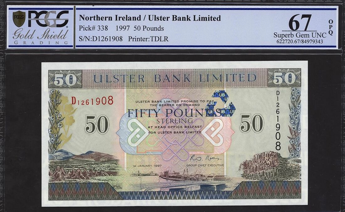 (x) Ulster Bank, Northern Ireland, £50, 1st January 1997, serial number D1261908, (PMI UB94), in PCGS holder 67 OPQ Superb Gem Uncirculated