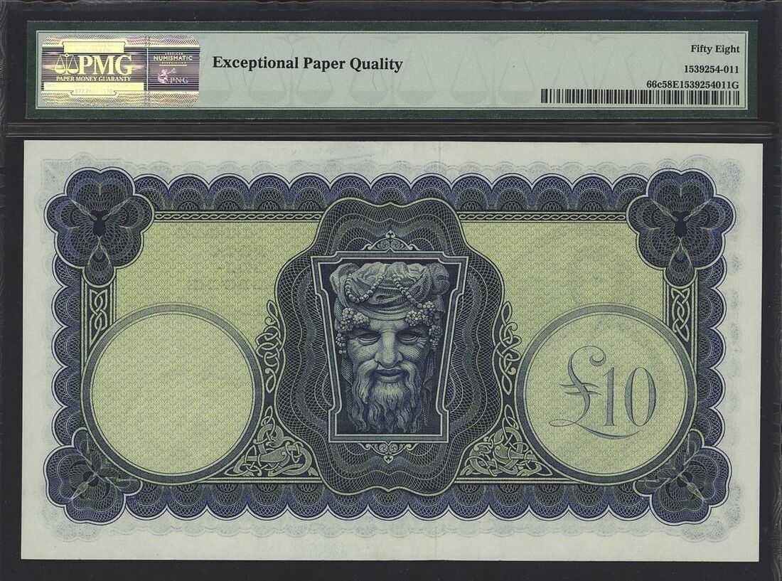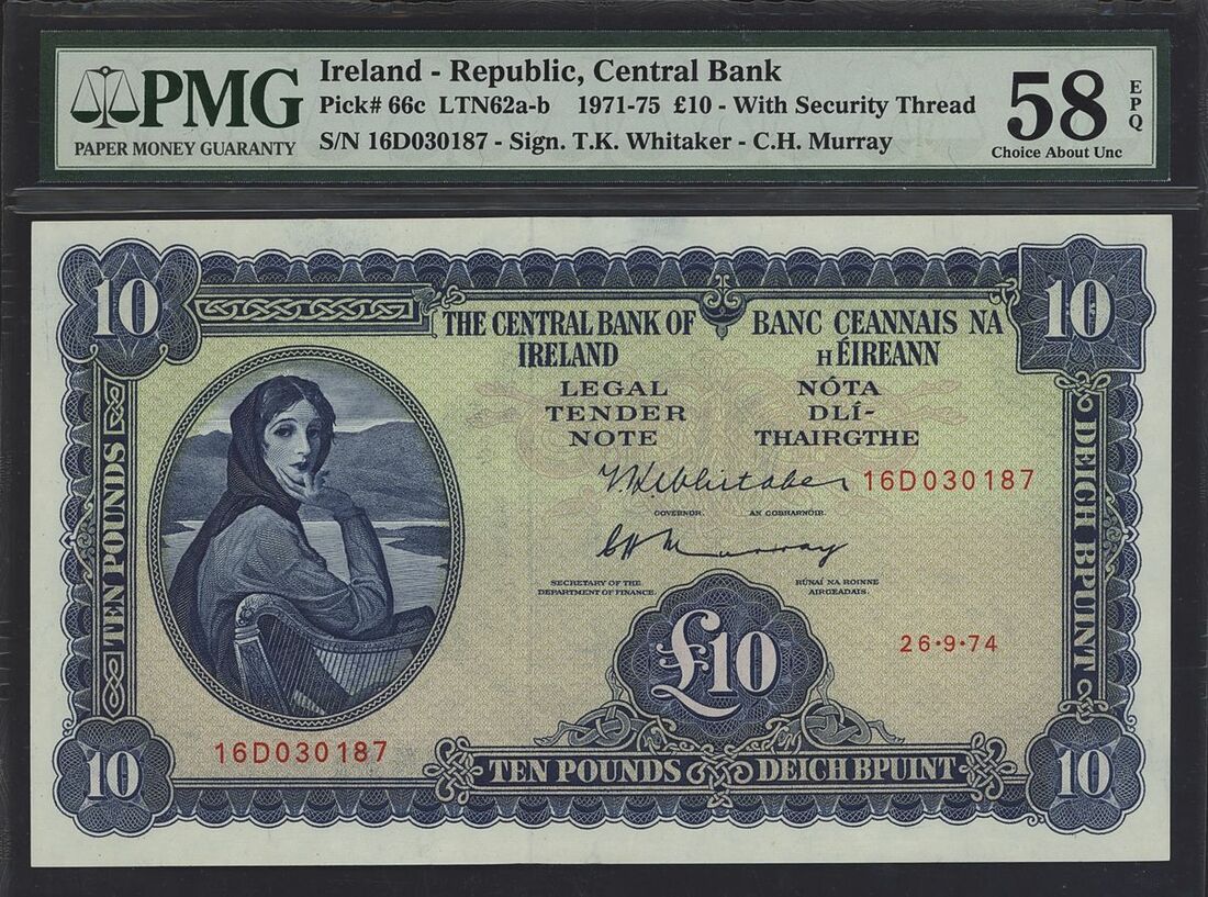(x) Central Bank of Ireland, £10, 26th September 1974, serial number 16D030187, (PMI LTN62a-b), in PMG holder 58 Choice About Uncirculated
