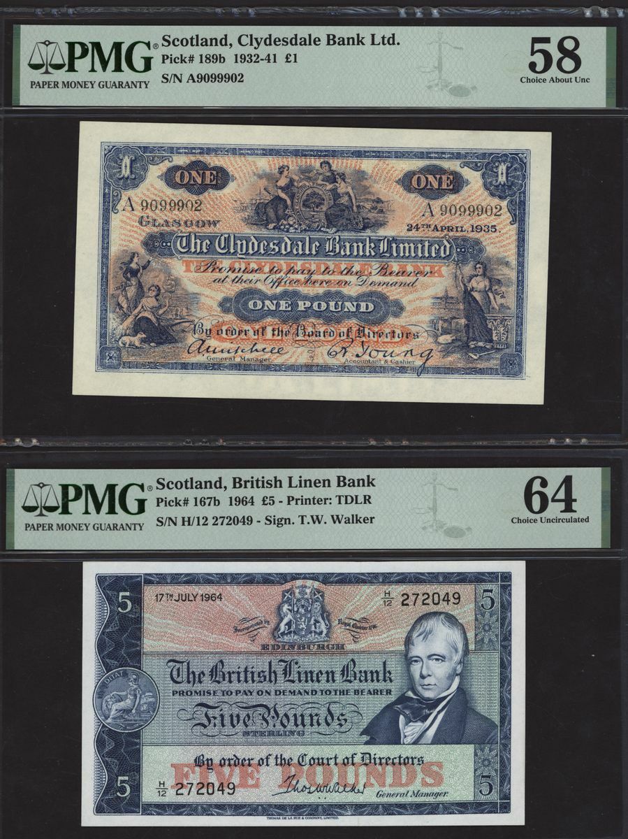 (x) Scotland, a pair of notes, British Linen Bank, £5, 17th July 1964. serial number H/12 272049,