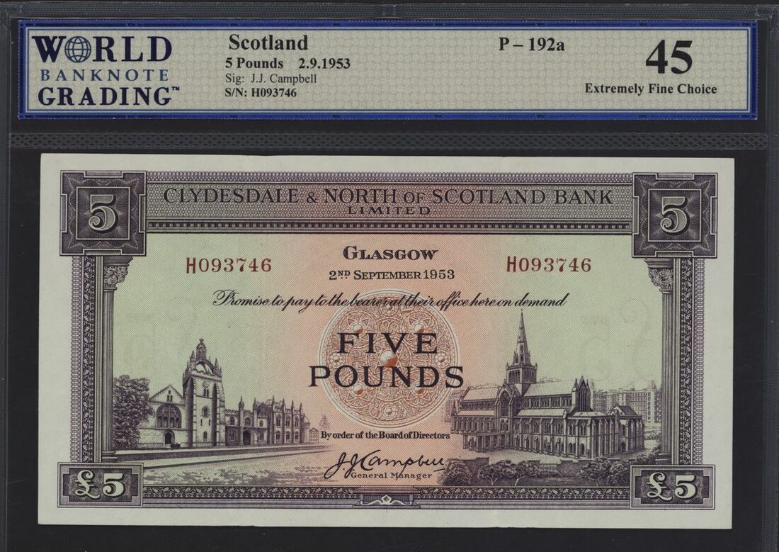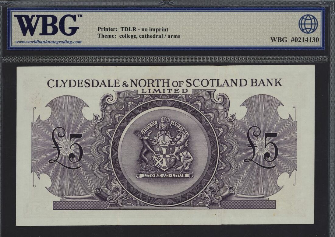 (x) Clydesdale & North of Scotland Bank, £5, 2 September 1953, serial number H093746, (PMS CL25a, Pick 192a), in WBG holder 45 Extremely Fine Choice