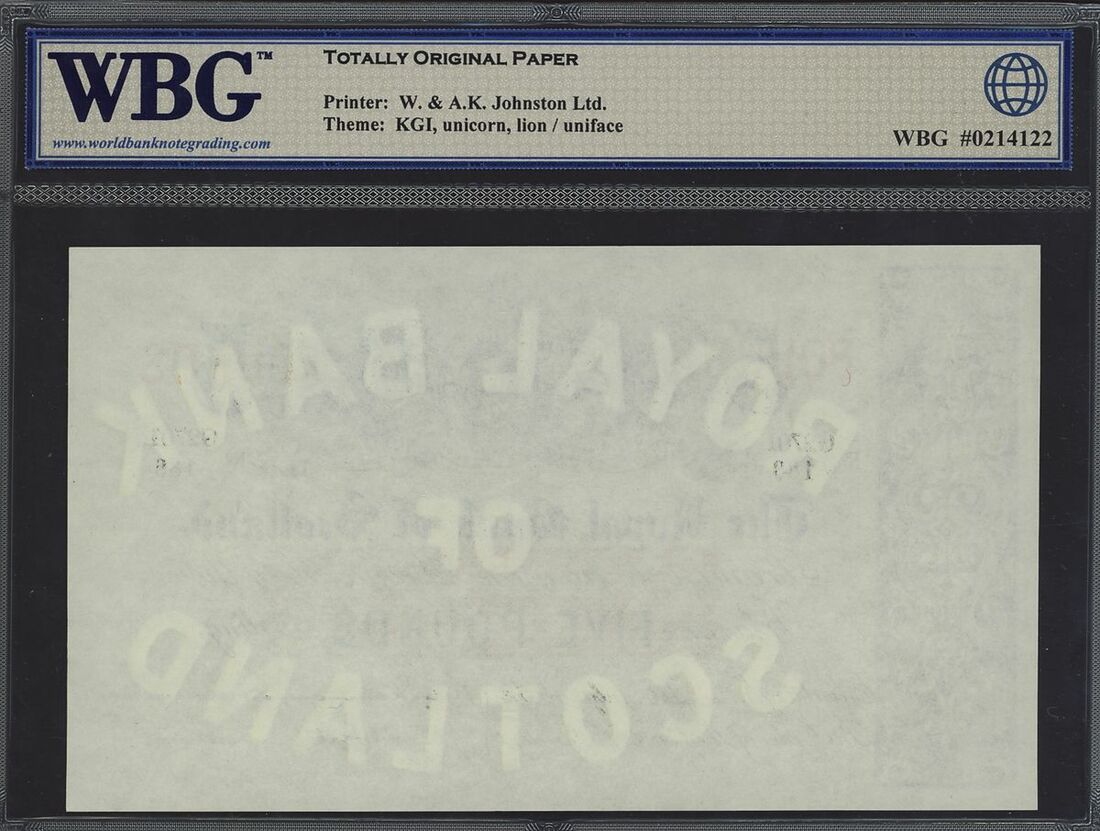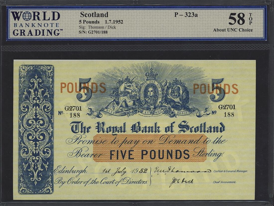 (x) Royal Bank of Scotland, £5, 1st July 1952, serial number G2701/188, (PMS RB58a), in WBG holder 58 TOP About Uncirculated Choice