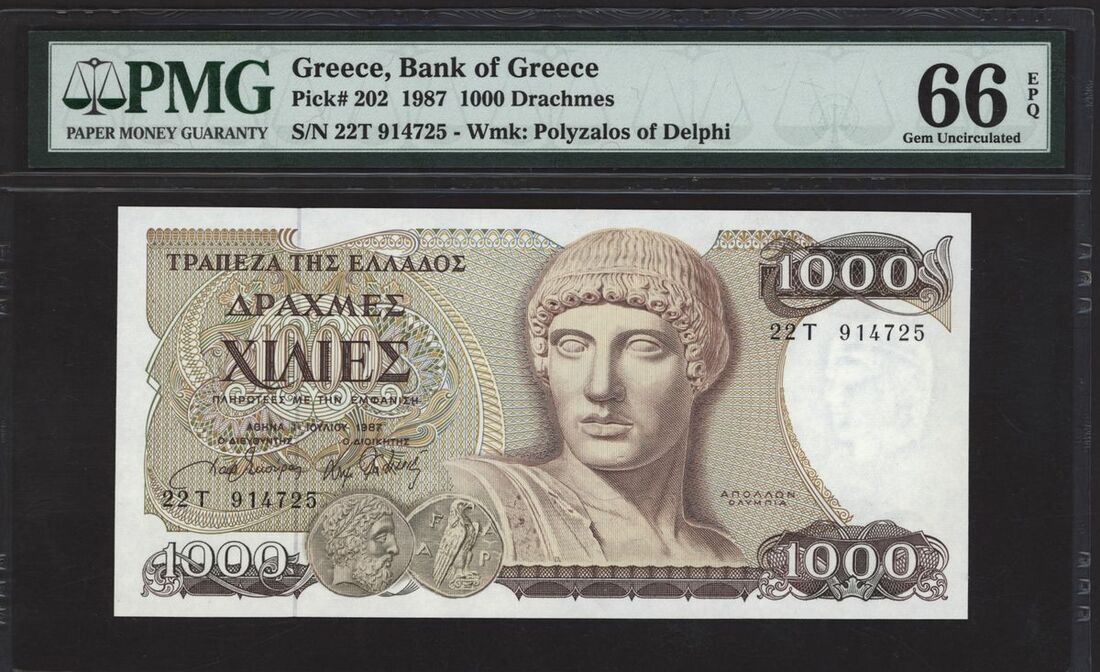 (x) A pair of European notes, Bank of Greece, 1000 drachmes, 1987, serial number 22T 914725,
