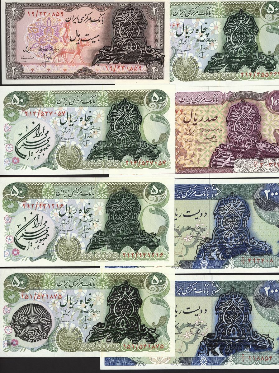 (x) A group of Iranian notes a selection of notes of various denominations and dates, Central Bank of the Islamic Republic of Iran (2), Bank Markazi Iran (29) a bright and colourful group,