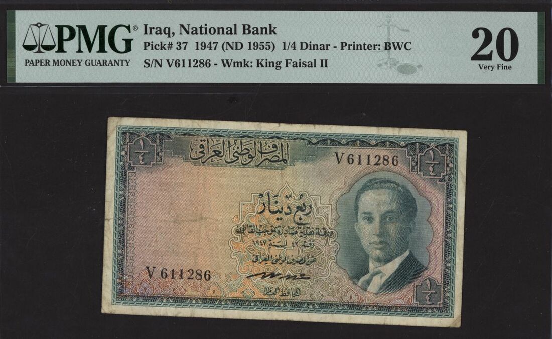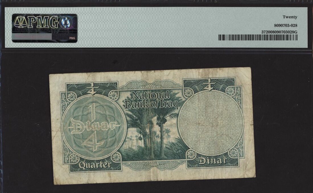 (x) National Bank of Iraq, 1/4 dinar, 1947 (ND 1955), serial number V611286, (Pick 37), in PMG holder 20 Very Fine