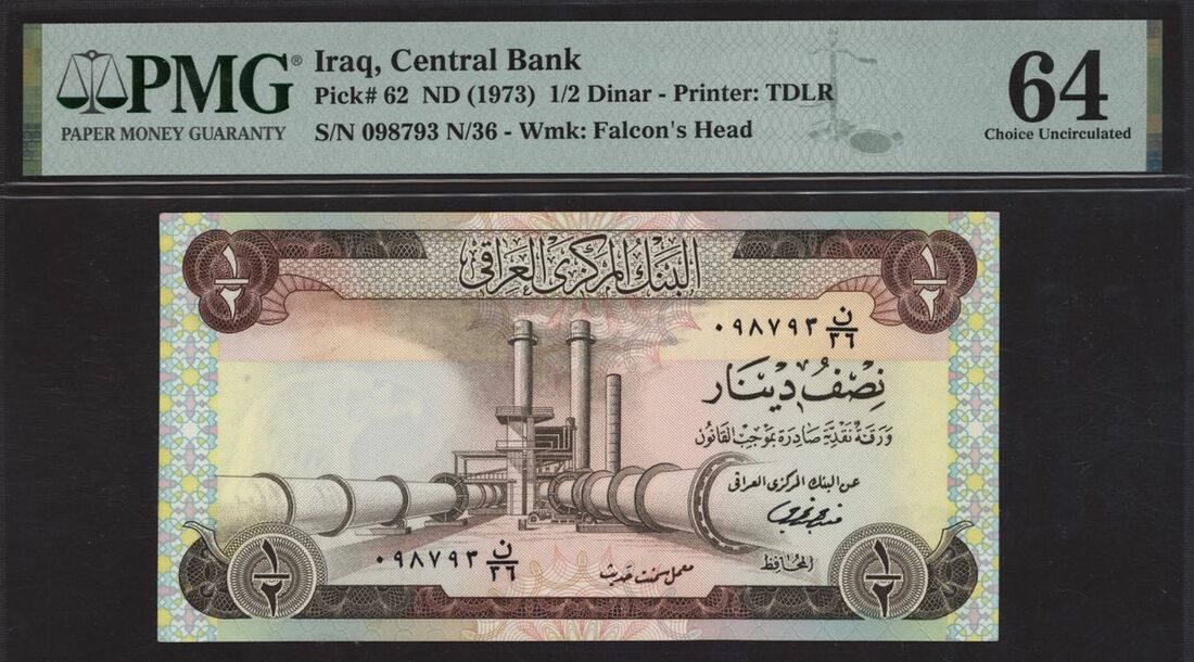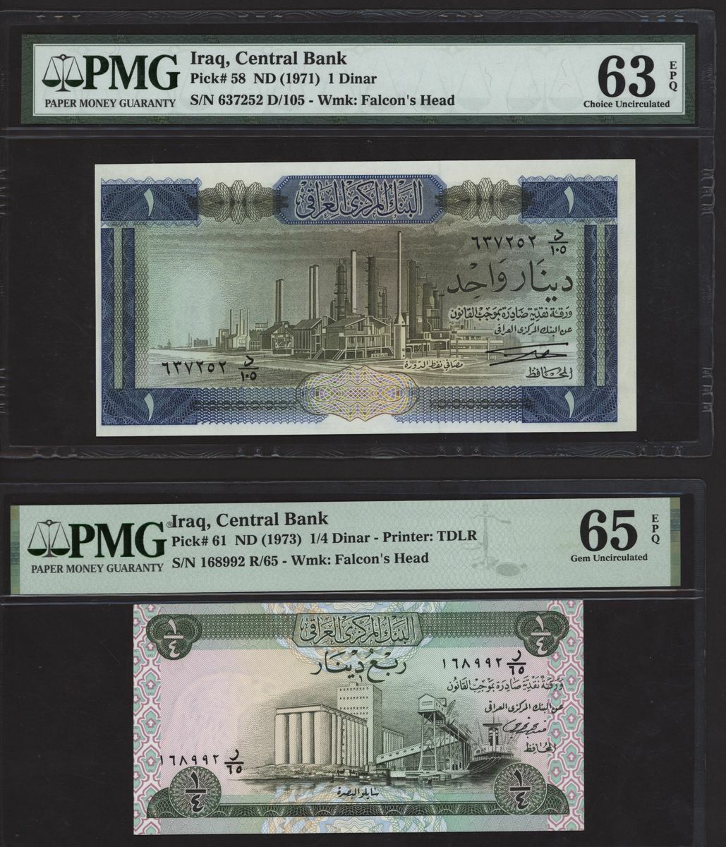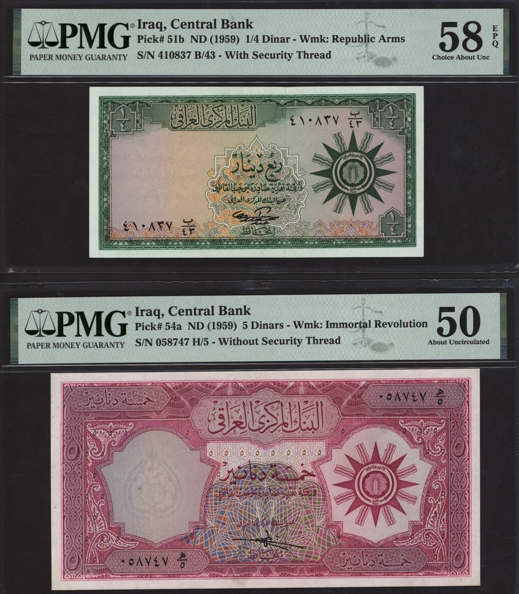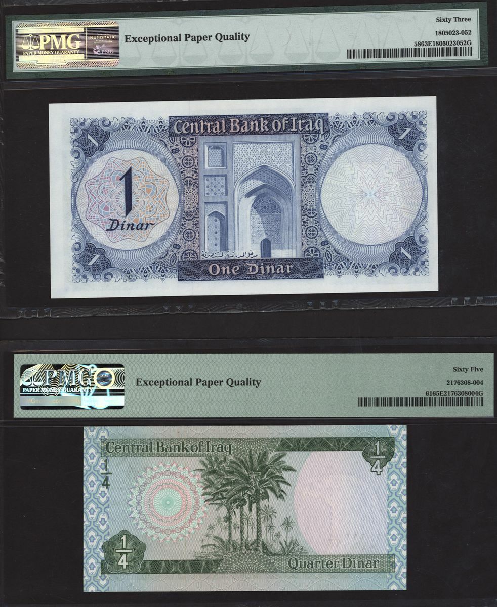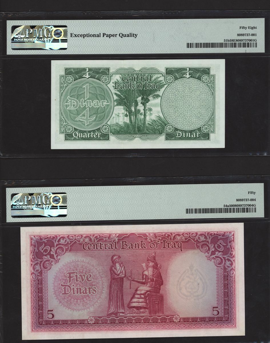 (x) Central Bank of Iraq, a group of notes, 1/4 dinar (2), 5 dinar, 1 dinar, 1/2 dinar