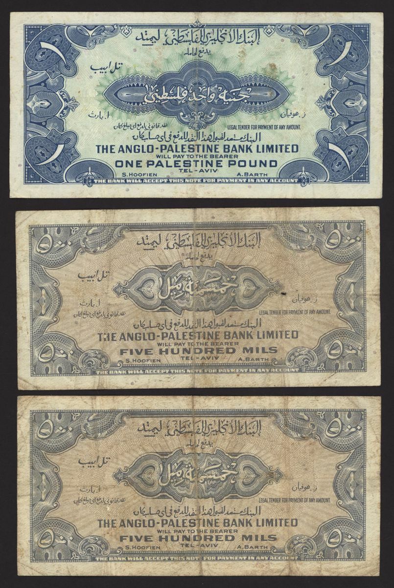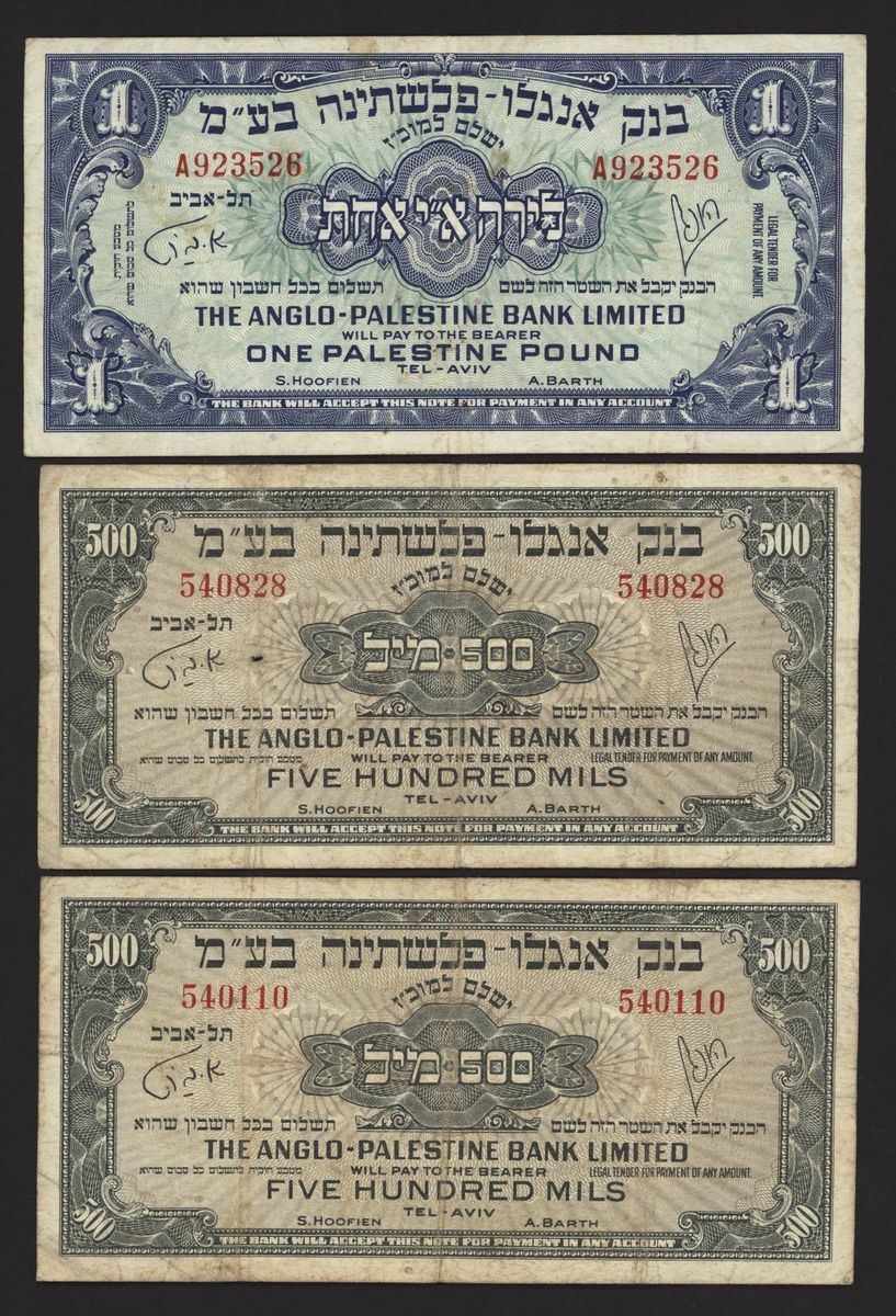 Anglo-Palestine Bank, Israel, pair of 500 mils, ND (1948-51), serial numbers 540110 / 828, including £1, ND (1948-51), serial number A923526
