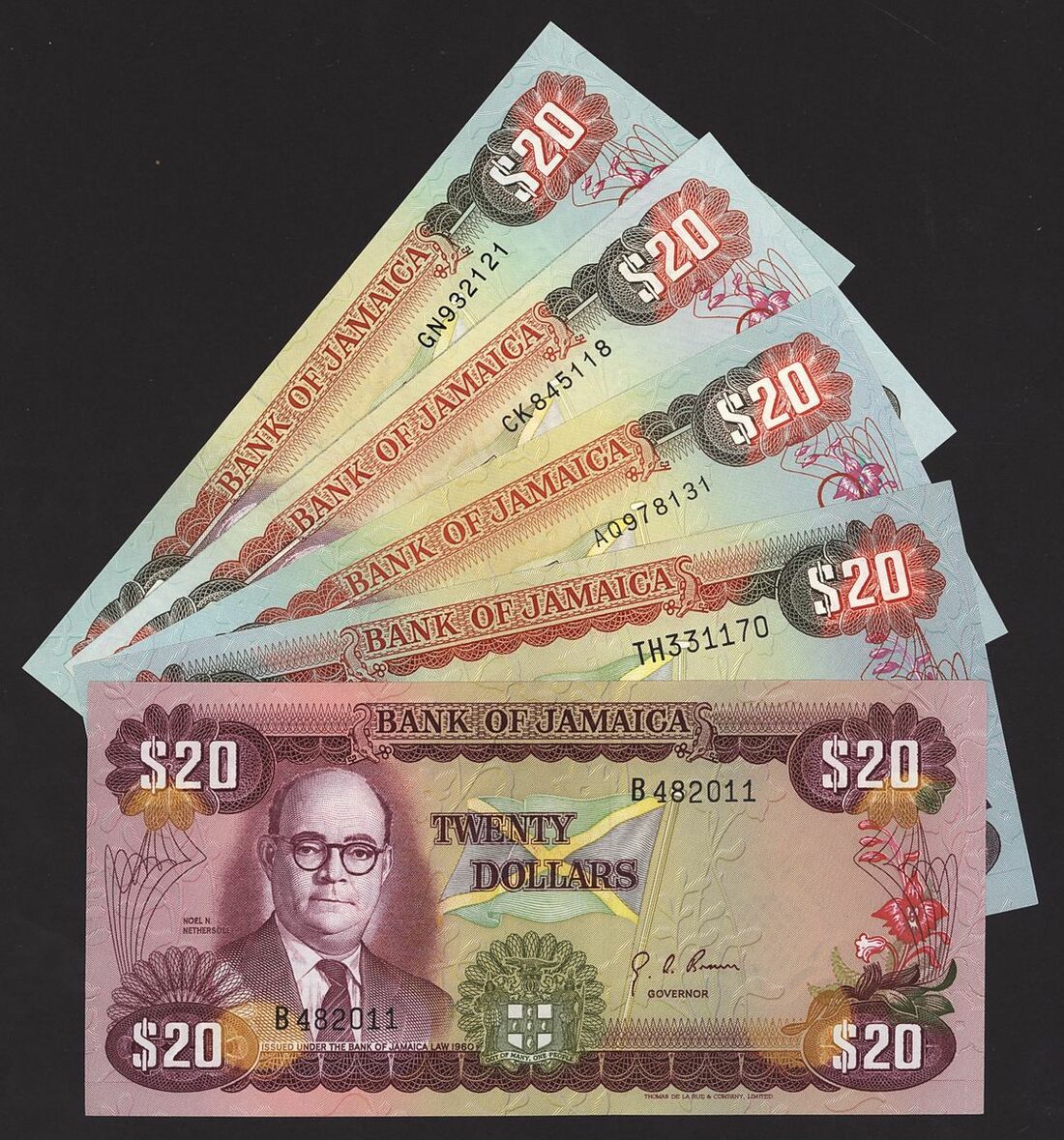 (x) Bank of Jamaica, a group of notes, 20 dollars, 1960 (ND 1977),