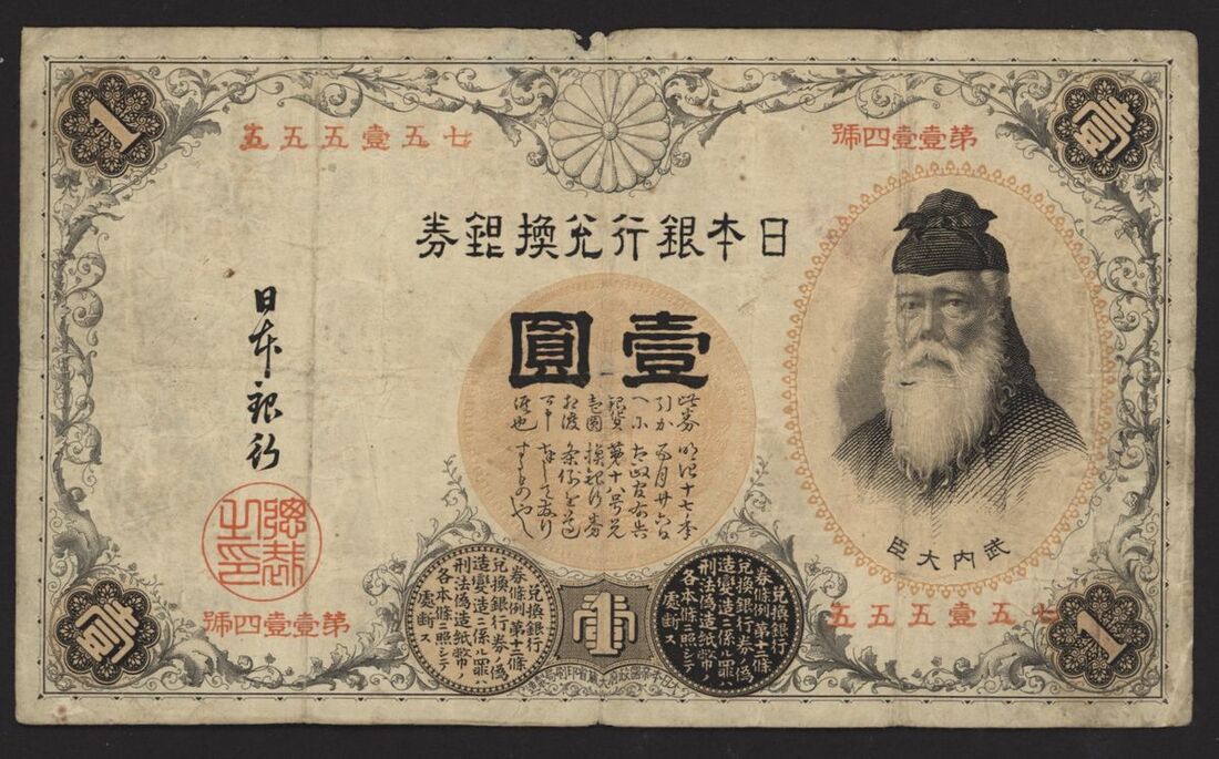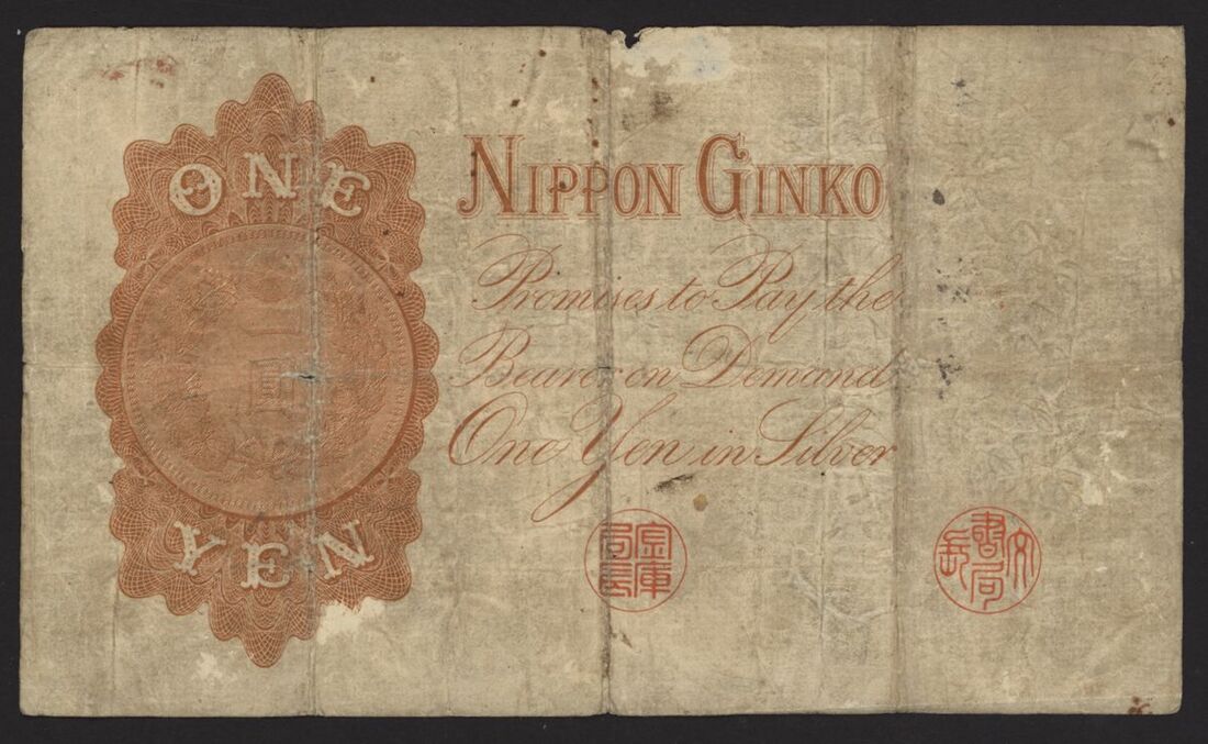 Bank of Japan, new silver certificate issues, 1 yen, 1889, (Pick 26), very good
