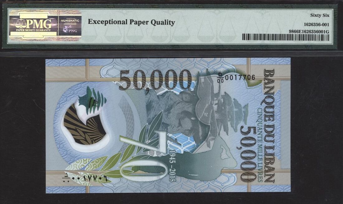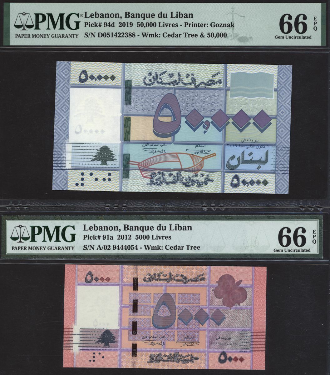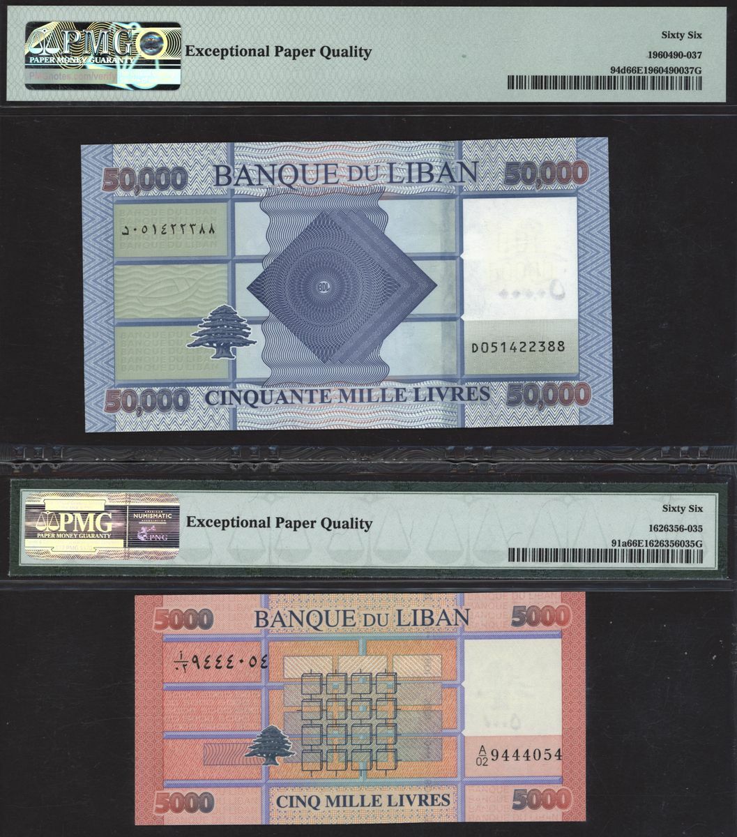 (x) Banque du Liban, Lebanon, a trio of notes, 5000 livres, 2012, serial number A/02 9444054,