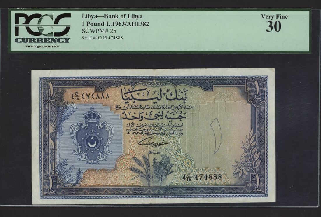 (x) Bank of Libya, £1, 1963, serial number 4 C/15 474888, (Pick 25), in PCGS holder 30 Very Fine
