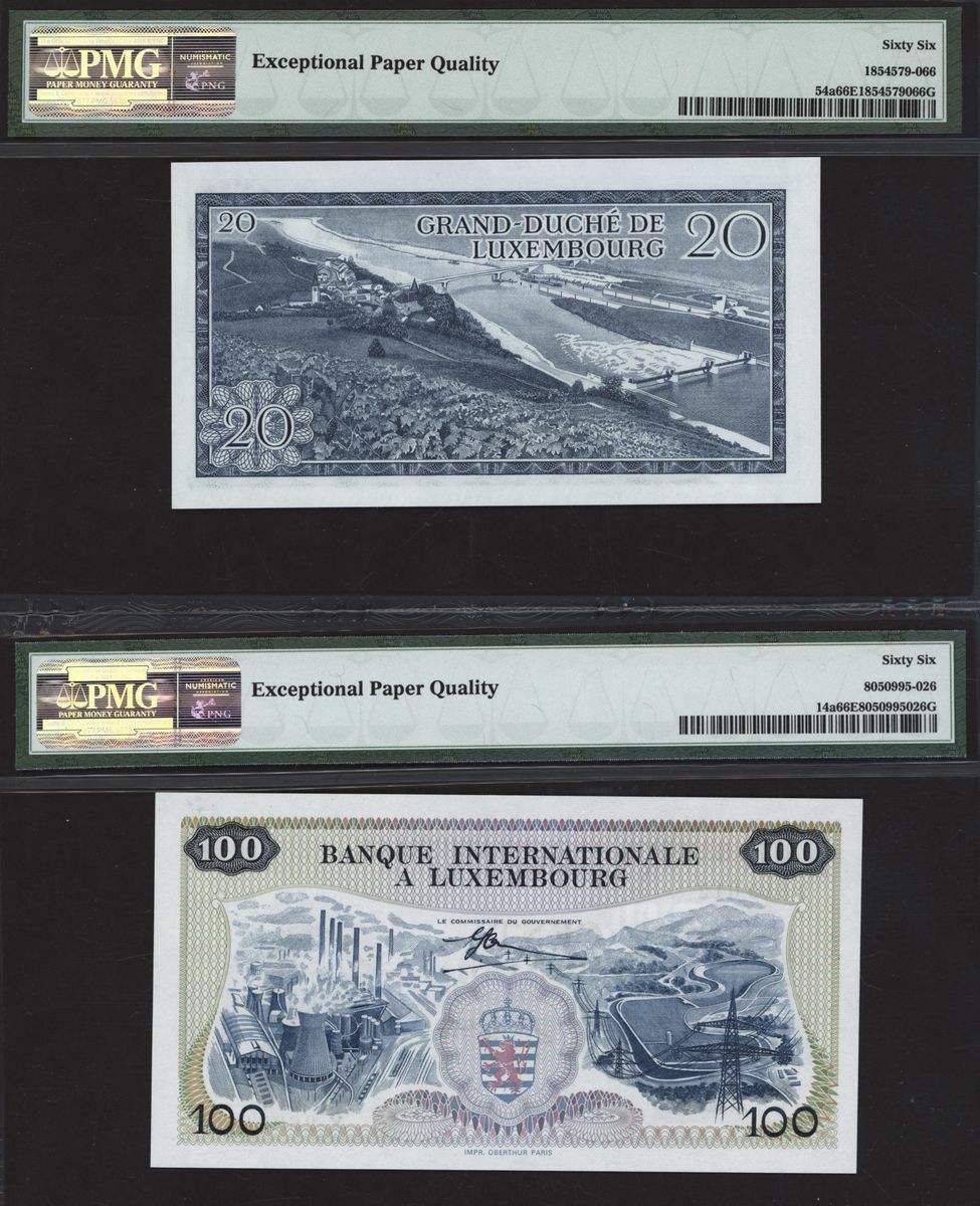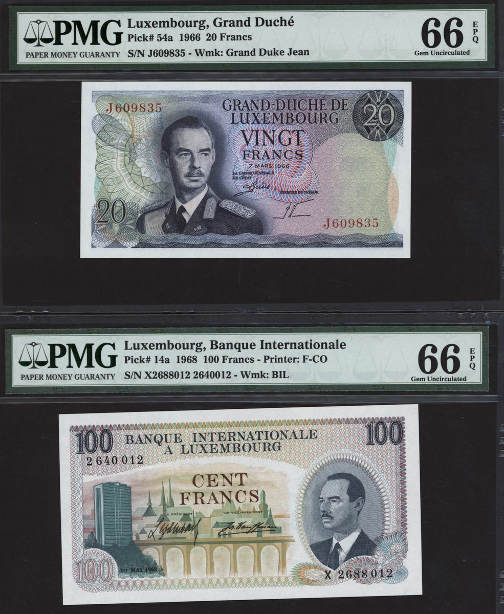 (x) A trio of Luxembourg notes, Banque Internationale, 100 francs, 1968, serial number X2688012 2640012,