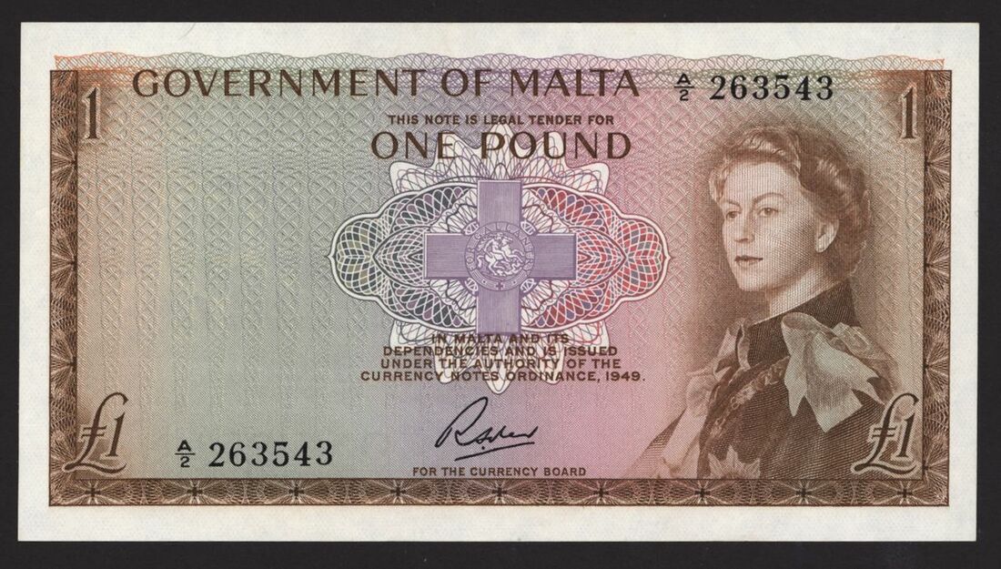 Government of Malta, £1, 1949 (ND 1963), serial number A/2 263543, (Pick 26a), uncirculated