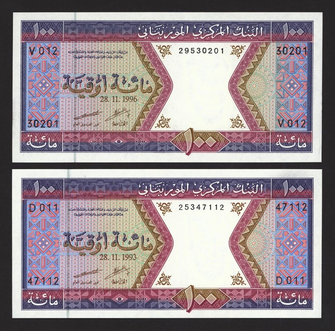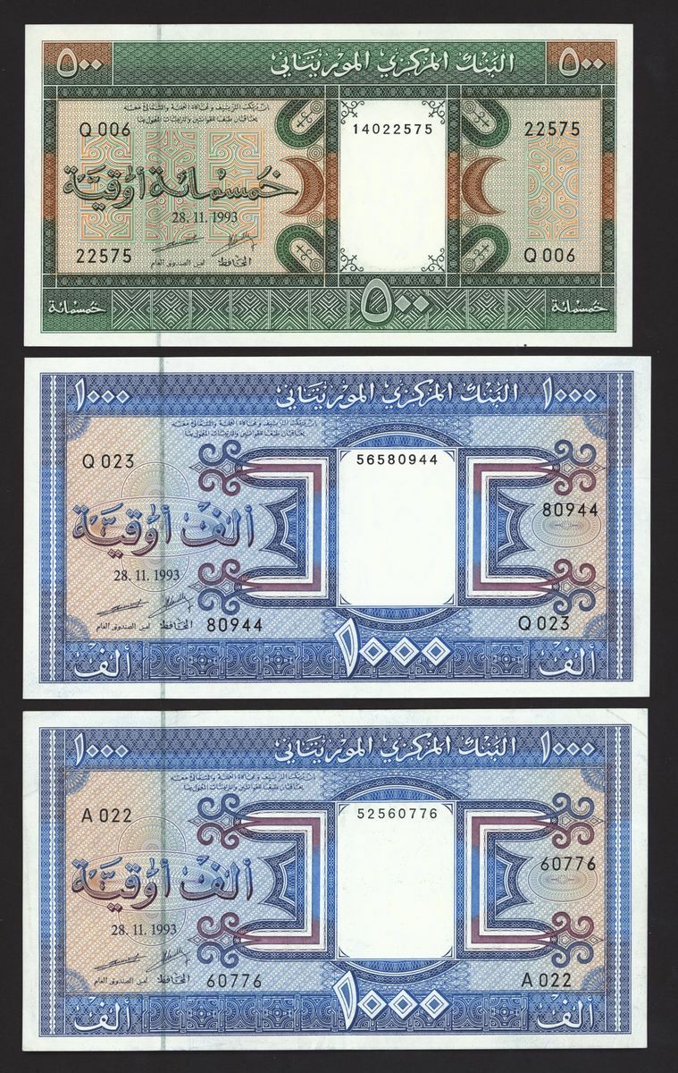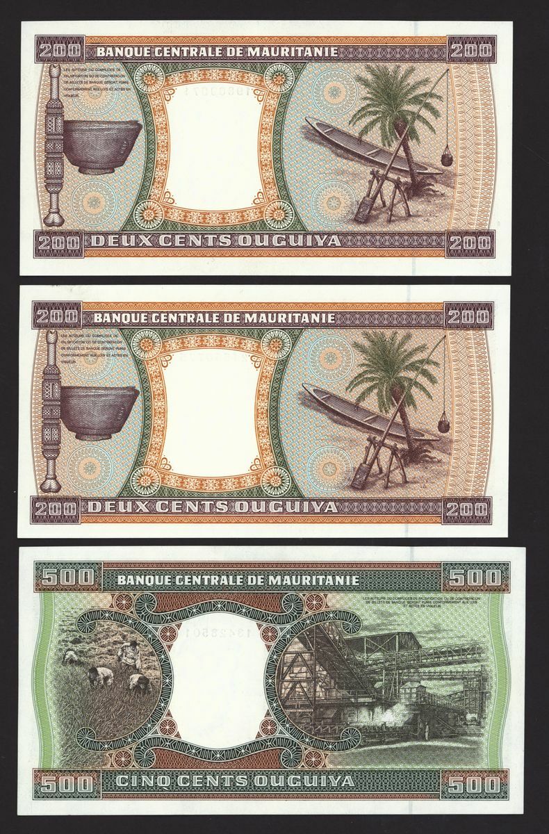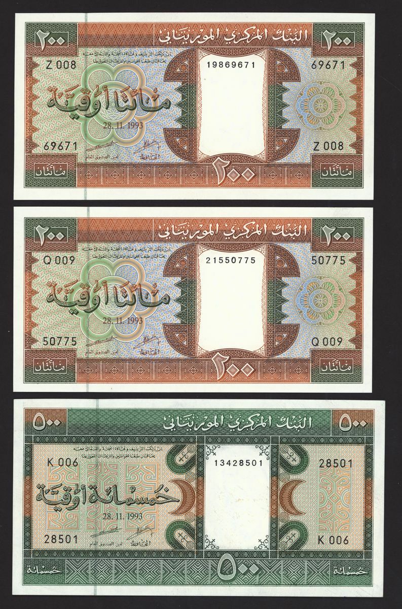 (x) Banque Centrale, Mauritania, set of the 1993 series, including a near complete second set except for one 100 ouguiya dated 1996, comprising 100, 200, 500 and 1000 ouguiya, Michel signature
