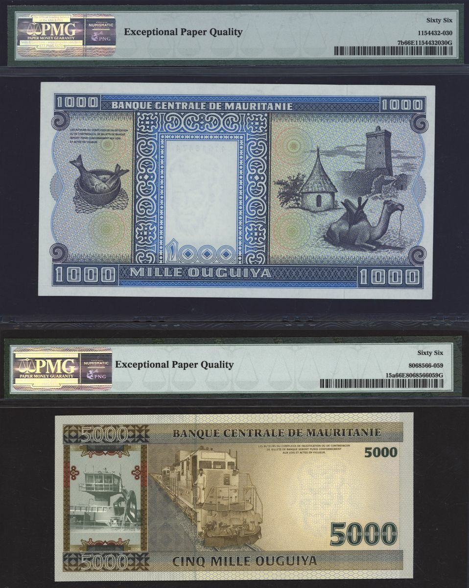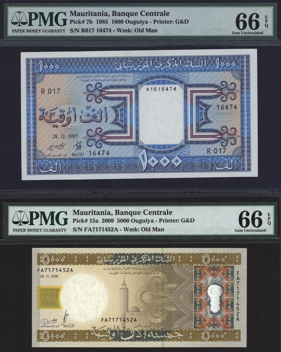 (x) Banque Centrale, Mauritania, a pair of notes, 1000 ouguiya, 1985, serial number R017 16474,