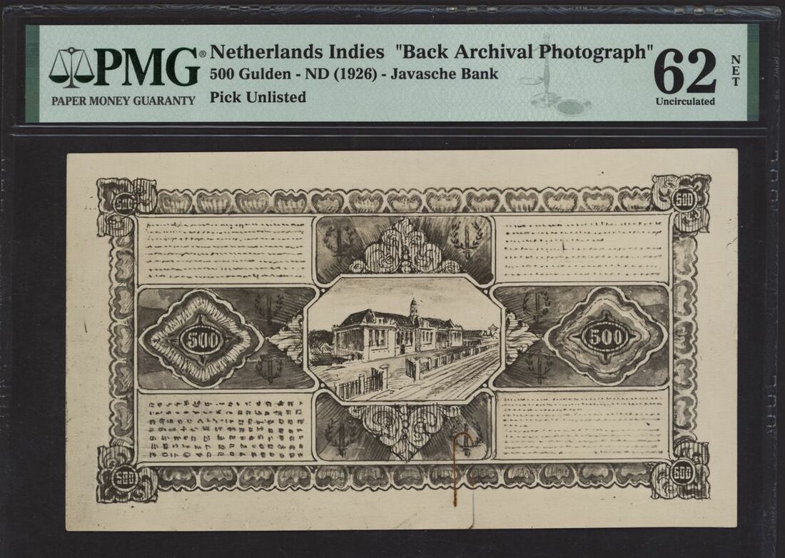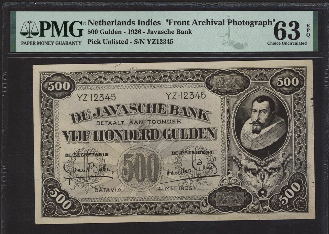 (x) Javasche Bank, Netherlands Indies, pair of front and back archival photographs 500 gulden, 1926, serial number YZ12345, (Pick unlisted), in PMG holders 63 EPQ Choice Uncirculated, 62 NET Uncirculated, rust