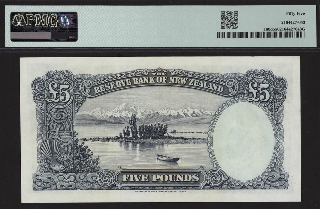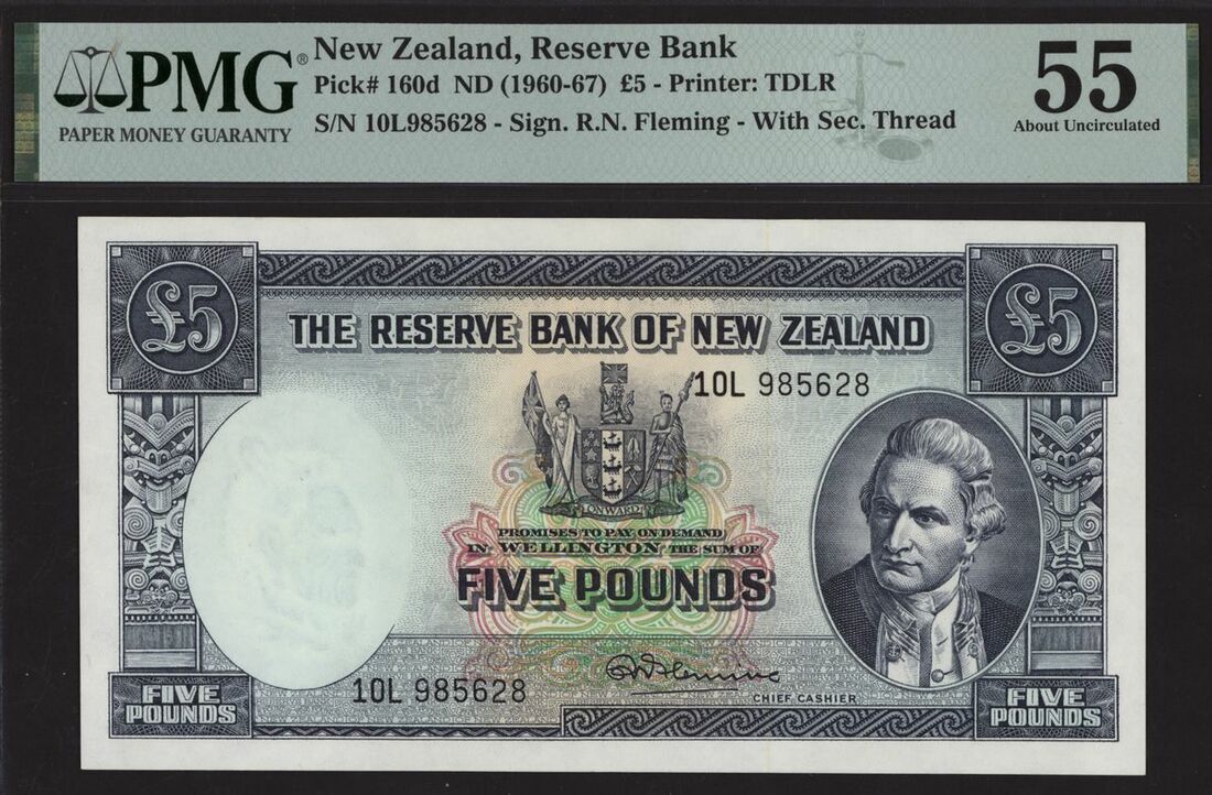 (x) Reserve Bank of New Zealand, £5, ND (1960-67), serial number 10L985628, (Pick 160d), in PMG holder 55 About Uncirculated