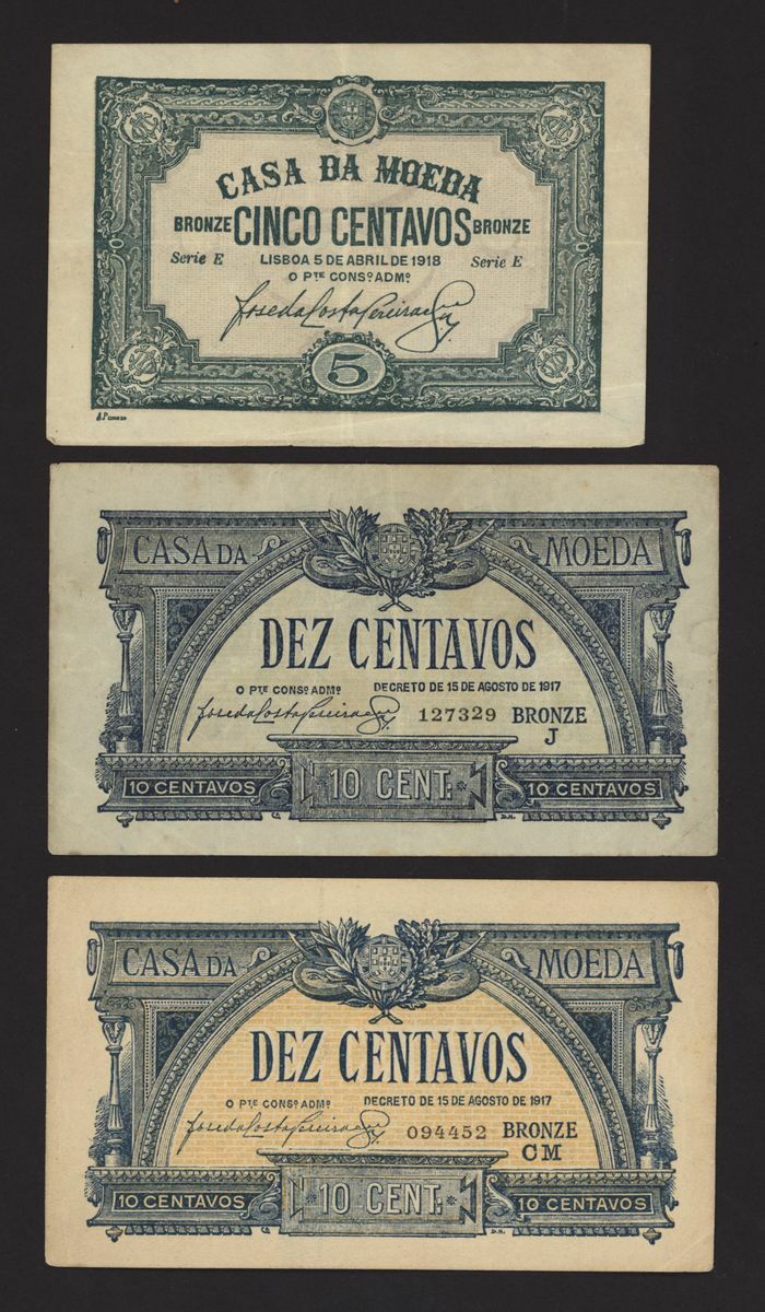 (x) Casa da Moeda, Portugal, a group of small denomination of the early series, comprising 5 centavos (2), 10 centavos (4)