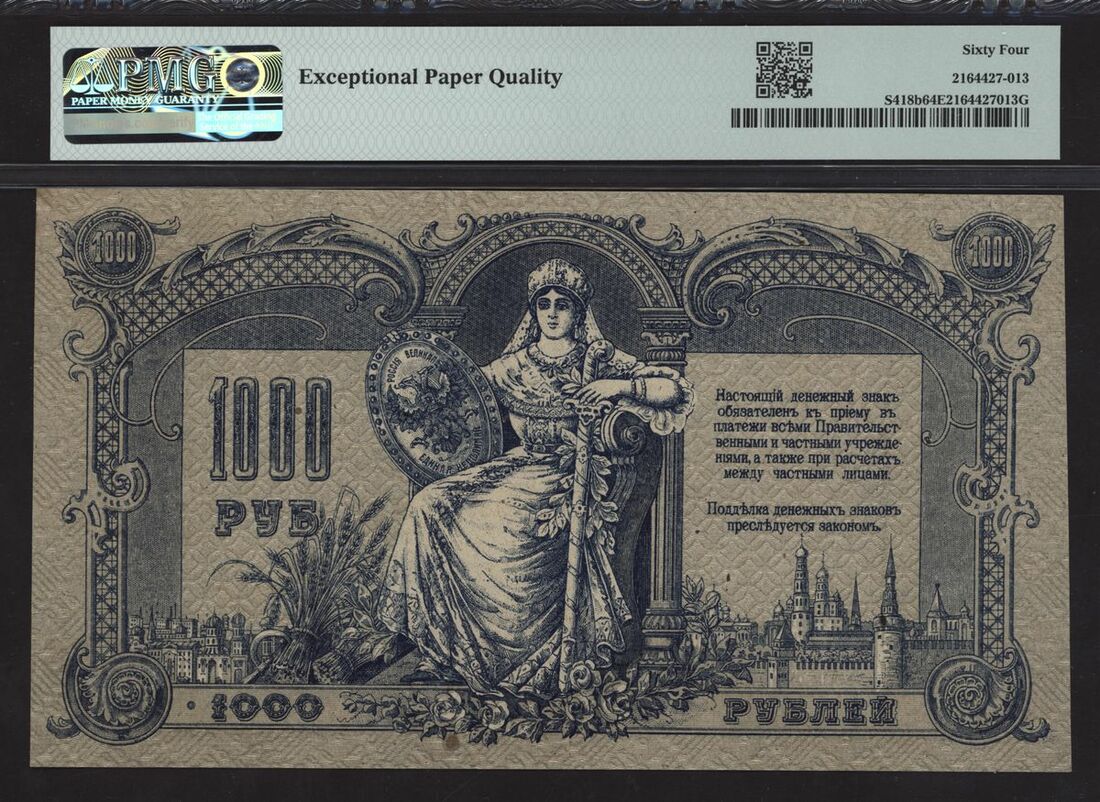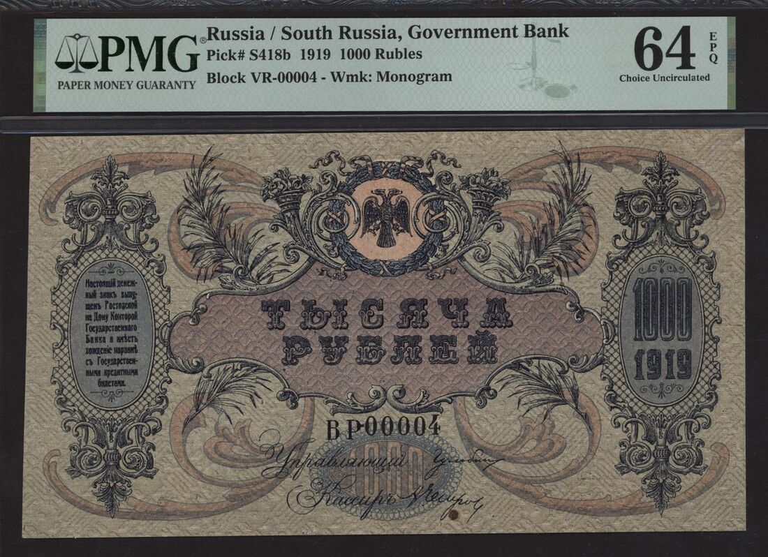 Government Bank, Russia / South Russia, 1000 rubles, 1919, block VR-00004, (Pick S418b), in PMG holder 64 EPQ Choice Uncirculated